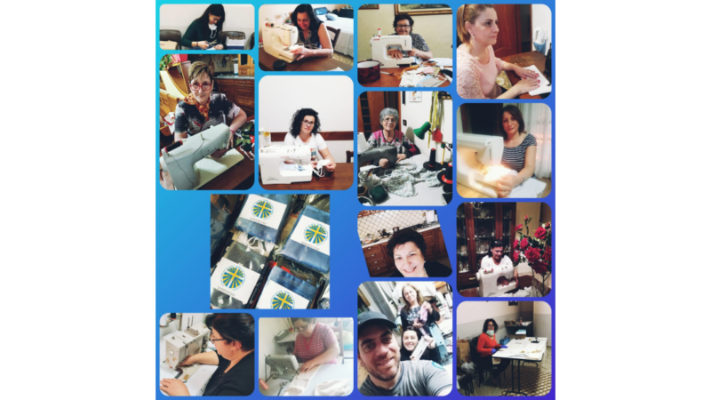 Ci piace pensare che il nostro è un laboratorio di fraternità, nel quale tra l’altro si cuciono mascherine. E quando a corredo di questa storia ho chiesto di tirar fuori le foto più belle, ne sono arrivate tante, troppe per poterle pubblicare. Tra tutte, scegliamo un piccolo collage di Suore all’opera, e quello fatto dalla Parrocchia di S. Maria la Carità, che mostra alcune amiche ed amici che hanno lavorato al progetto. In queste foto ci sono mani, cuori, sorrisi di persone che donando tempo e disponibilità hanno cucito relazioni e amicizia, piccoli segni dell’abbraccio della nostra Chiesa in uscita in tempo di Covid.