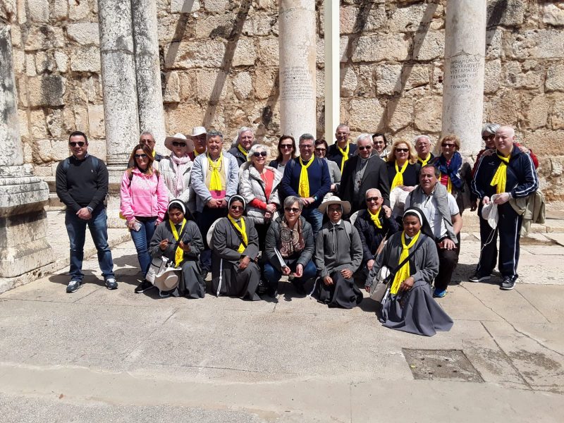 Infine, nel primo pomeriggio, il monte Tabor: sia per il gruppetto che ha accettato la proposta di salire a piedi che per tutti gli altri trovarsi su quel monte ha significato sentirsi ancora più vicini a Gesù, anche nel momento della prova o della difficoltà che spesso avvertiamo nel seguirlo. Fu così per Pietro che con Giacomo e Giovanni si recò sul monte dietro al Maestro. Non capiva il perché della sua decisione di andare a Gerusalemme: la via della croce gli sembrava assurda, proprio ora che il successo era garantito dal gran numero di persone che seguiva il Rabbi di Galilea da tutti i paesi. Partecipare a un momento così profondo di preghiera fu un’esperienza unica e indimenticabile per Pietro. La preghiera prolungata e intensa, fino alla trasformazione: ecco il segreto di tanta forza, dovuta non al coraggio dell’eroe ma all’amore del Figlio sempre in comunione con il Padre e perciò pronto a donare la vita per tutti. Scendere dal monte non fu semplice per i discepoli, tentati di fare lì tre capanne per Gesù, Mosè ed Elia, come lo stesso Pietro aveva proposto. Scesero perciò in silenzio, come abbiamo fatto anche noi, ripensando a ciò che ci aspetta a valle non tanto in questi giorni ma nella vita quotidiana. Non c’è tuttavia altro modo di seguire il Signore che stringersi a Lui, pietra viva: sono le parole della prima lettera di Pietro che abbiamo ascoltato nella lettura breve dei Vespri e che ci hanno aiutato a fare sintesi di quanto oggi ci è stato donato. Possiamo anche noi costruire un edificio spirituale, essendo diventati pietre vive nel Risorto: è la missione della Chiesa, chiamata con il coinvolgimento di tutti i suoi membri ad anticipare la gioia indicibile e gloriosa che ci aspetta.