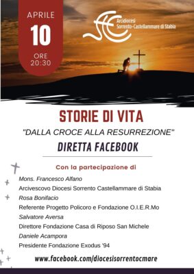 Domenica 10 Aprile, alle ore 20:30, appuntamento in diretta Facebook con Mons. Francesco Alfano. “Storie di Vita – dalla croce alla resurrezione” : è questa la tematica scelta per l’incontro online che vuole essere un racconto corale di realtà territoriali diocesane e significative testimonianze.