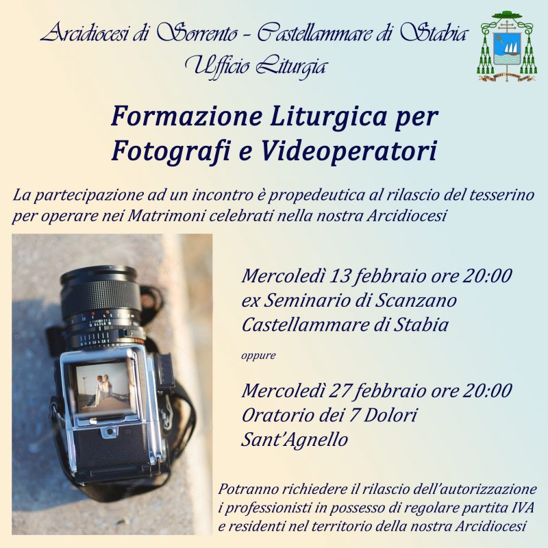 “Un appuntamento di Formazione Liturgica sui luoghi e i tempi della celebrazione cristiana, per crescere nella consapevolezza che non si può partecipare ad un rito dall’esterno (vi si è inevitabilmente coinvolti) e per curare quell’armonia di fondo fra tutti i partecipanti che è componente necessaria affinchè la Liturgia risplenda nella sua nobile semplicità.
