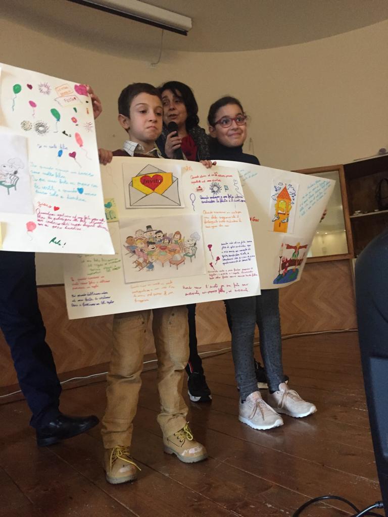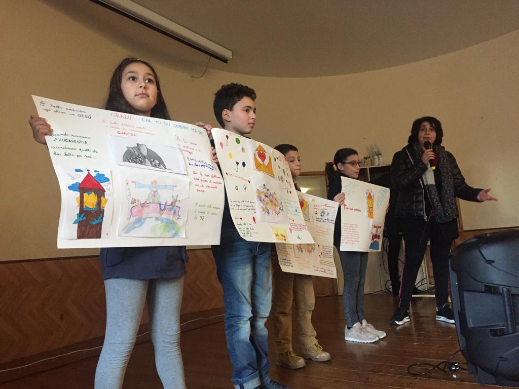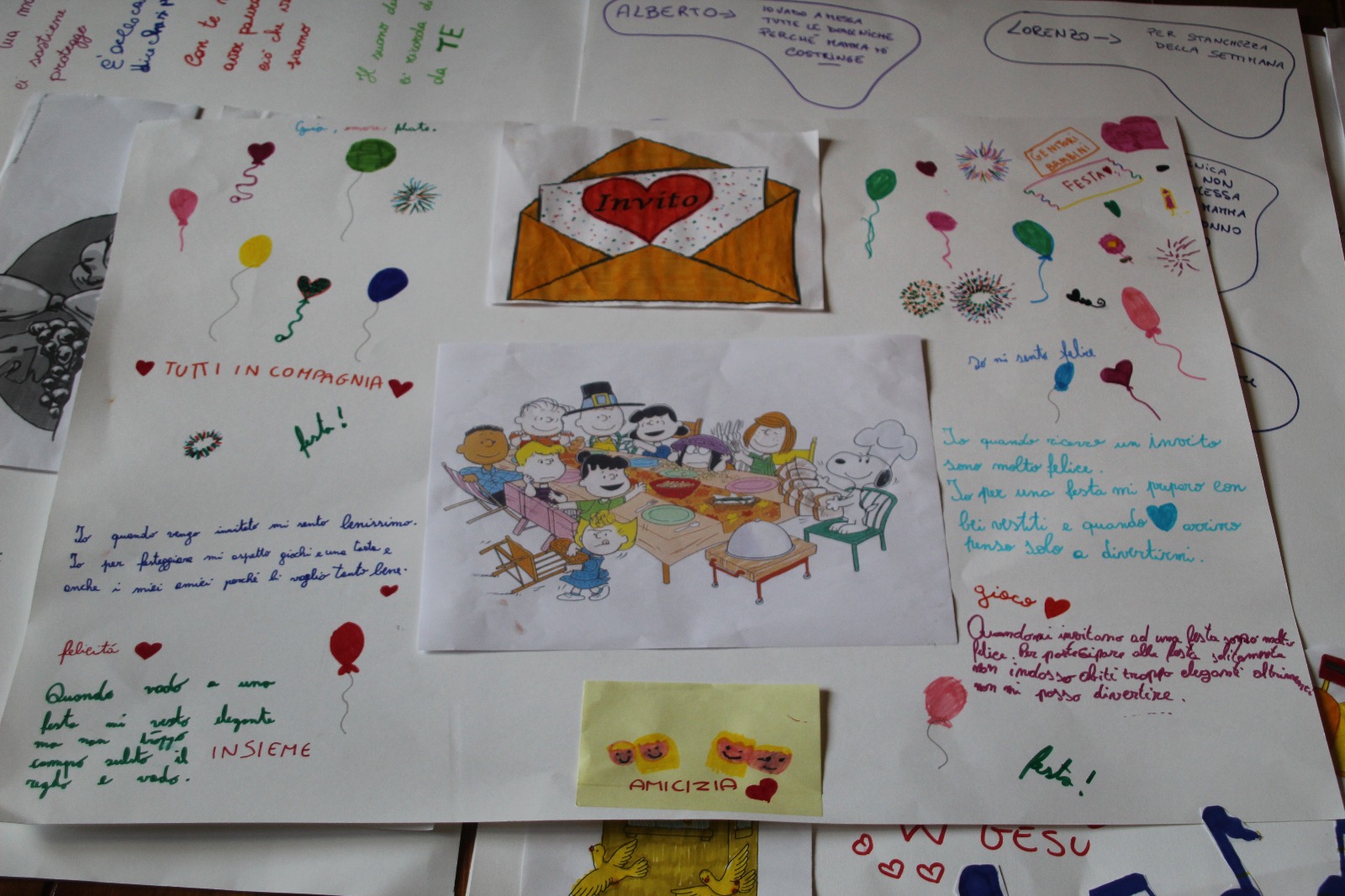 Alle 13:00 il secondo appuntamento al Conservatorio dei Sette Dolori, dove ognuno ha portato qualcosa di buono da condividere per il pranzo. Il tema principale dell’incontro è stato l’Eucaristia intesa sia come festa che come Sacramento. L’Inno di catechesi ha inaugurato la giornata, a seguire c’è stato il pranzo e poi un momento di giochi ricco di puro divertimento e intesa tra genitori, figli e catechiste. Più tardi si sono riuniti i vari gruppi che hanno discusso di come ci si prepara per la festa di un amico e di come ci si sente e ci si prepara per la festa con Gesù. I bei pensieri che sono emersi dal confronto sono stati rappresentati su cartelloni che poi sono stati mostrati a tutti i partecipanti. La lettura del Vangelo, il canto “Alleluia delle lampadine”, una piccola omelia di don Francesco ed un buffet di dolci offerto dai genitori hanno concluso la bella Giornata della famiglia.