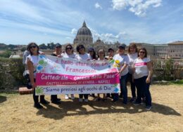 Benigni finisce abbracciando Papa Francesco e mentre lui si prepara a fare il giro della Piazza,noi Catechiste prendiamo lo striscione ,le bandiere della Pace e della nostra città e ci piazziamo davanti alle recinzioni in legno e nonostante la folla che quasi ci schiacccia resistiamo. Infatti ecco la Papamobile ci passa davanti e noi sventoliamo tutto cio’ che abbiamo gridando il suo nome a più non posso lui si gira dal lato nostro sorride forse non ci ha notati o forse sì ma il suo sorriso e la sua benedizione è memorizzata nel nostro cuore. Andiamo via guidati dal nostro don Alessandro verso il Gianicolo per un po’ di ristoro e scopriamo una meraviglia un giardino dal quale abbiamo ammirato tutta Roma e Piazza San Pietro dall’alto godendo di un po’ di ristoro.