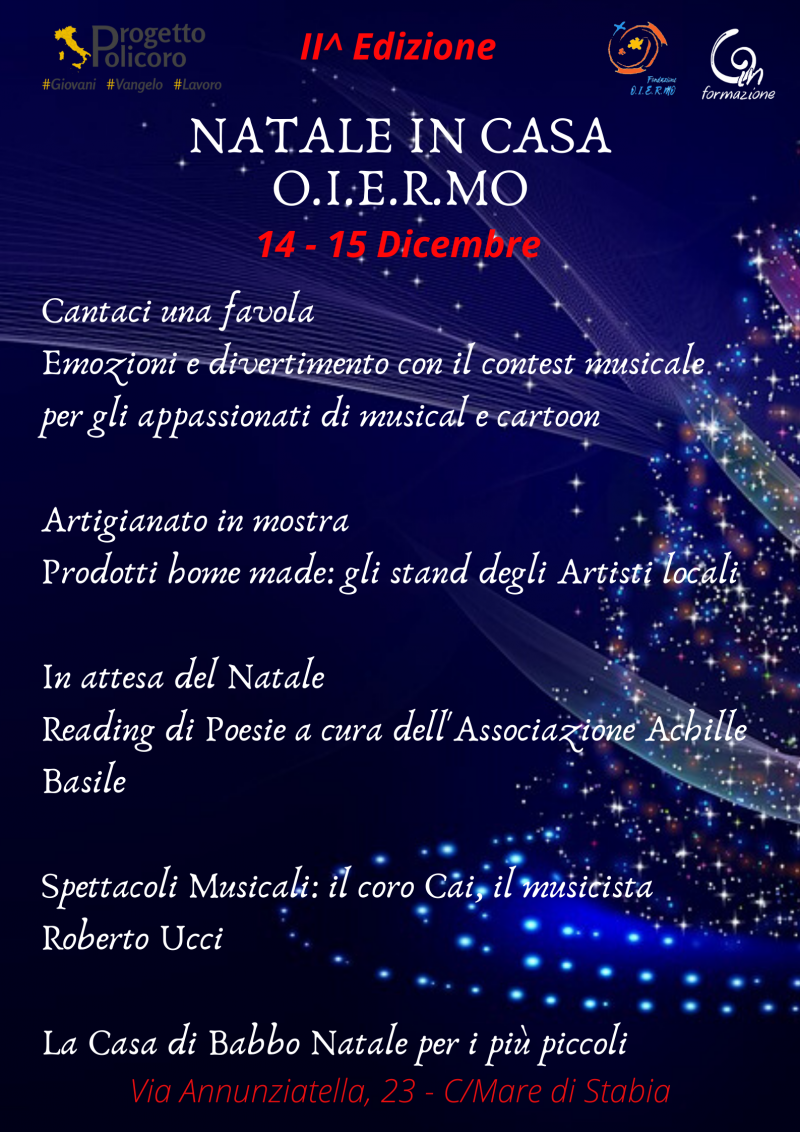 La Fondazione O.I.E.R.MO di Castellammare di Stabia si prepara a vivere Natale 2019, i Mercatini d’Artigianato sono in programma sabato 14 e domenica 15 dicembre 2019.