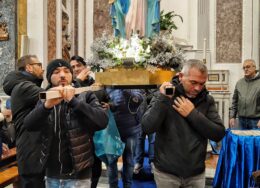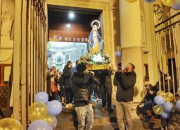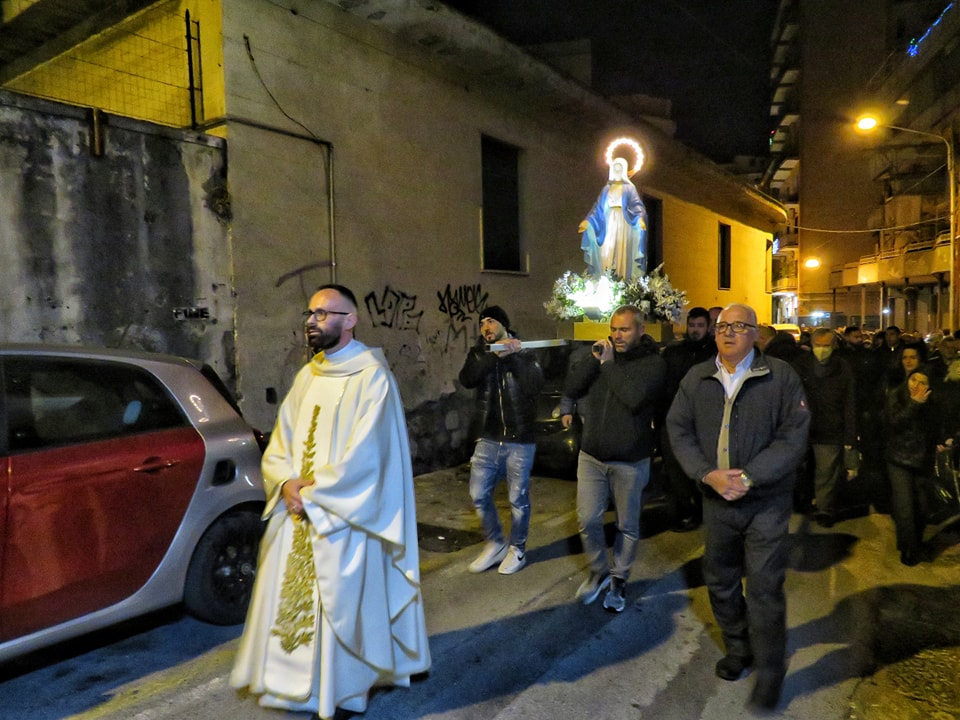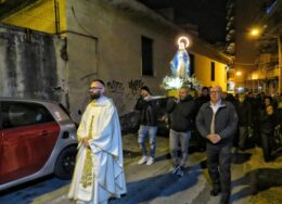 Si rinnova la fede e la speranza: è stato nuovamente benedetto il quadro dell’Immacolata Concezione di Via Regna Margherita, insieme alla voce di “Fratiell e surelle“. Una voce data da Gennaro e Vittorio per accompagnare una tradizione che continua ad ardere nel tempo. Dalla grande devozione mariana di Mons. Petagna, nasce l’usanza della dodicina dell’Immacolata all’alba e del corteo votivo nel quale, ancora oggi, si esortano a viva voce i fratelli e le sorelle a recarsi in chiesa per recitare il Rosario alla Madonna.