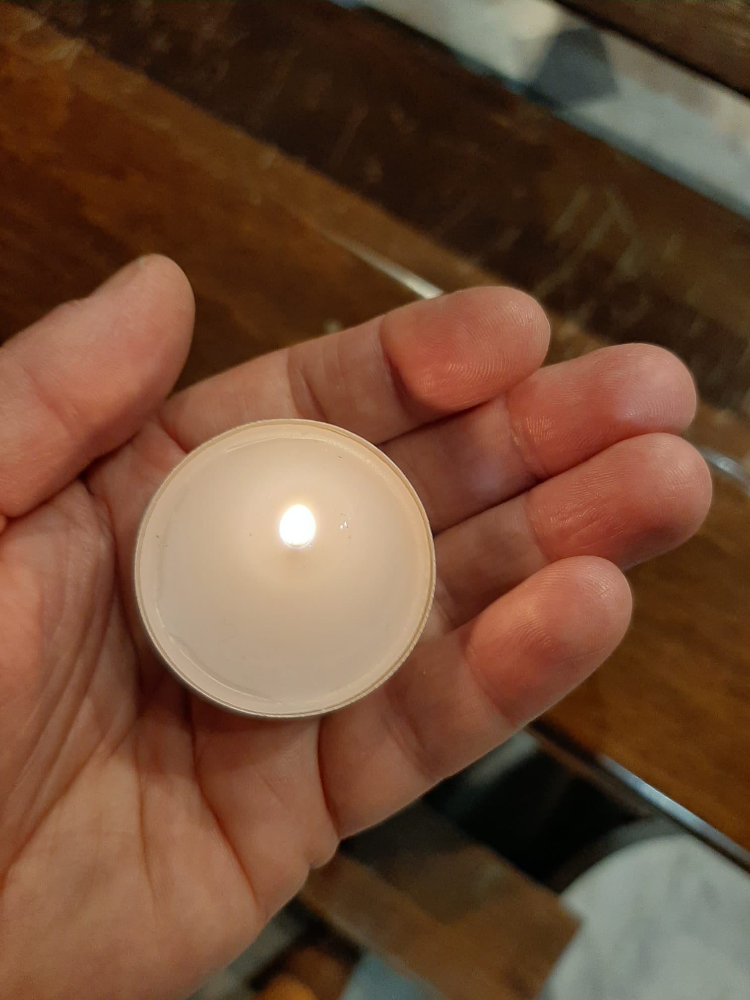 Dopo la liturgia Eucaristica i sette fedeli che all’inizio della celerazione hanno acceso le lampade le hanno prese e ciascuno di loro ha fatto accendere ai fedeli delle piccole lucerne ,con la raccomandazione di tutti e quattro i concelebranti di cercare di portarla accesa a casa e di essere fiammelle dello Spirito Santo.