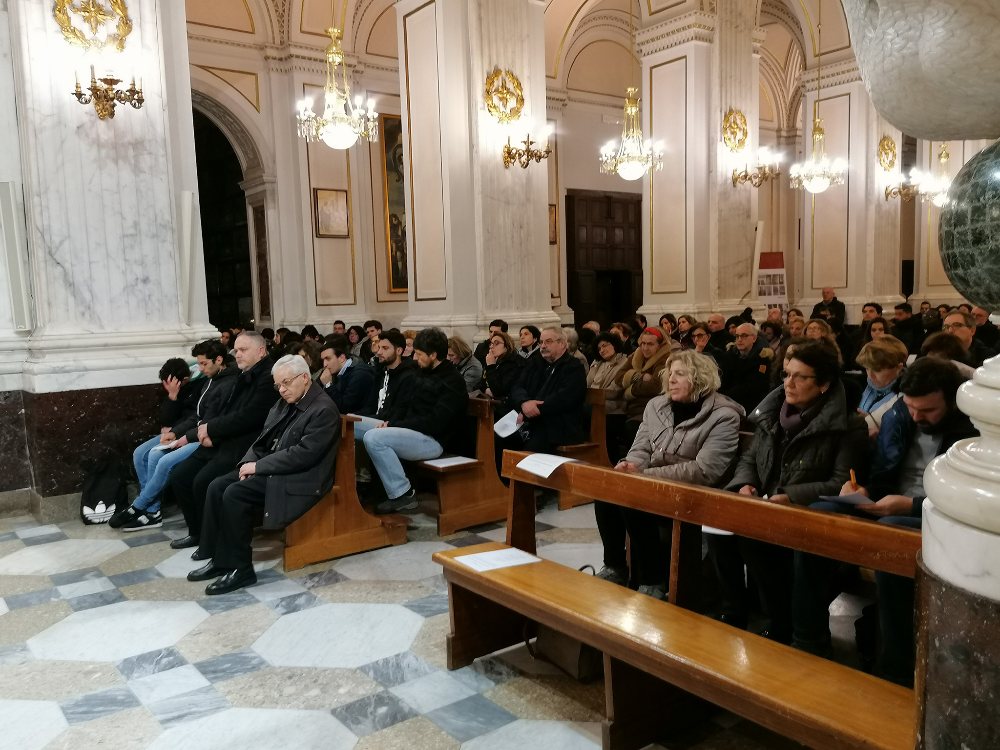 Dopo l’introduzione e la preghiera, guidata dal vicario zonale don Francesco Guadagnuolo, con la presenza in Basilica dell’Arcivescovo, presbiteri e religiosi, ma soprattutto con i posti a sedere riempiti da tanti laici di ogni età e provenienza, il prof. Tanzarella ha cominciato con l’invito a “pensare” a fronte della complessità della società odierna, mentre l’andazzo (e forse l’intendimento nascosto) della nostra società è NON pensare: “attrezzarsi”, quando ormai il mondo non chiede più di pensare.
