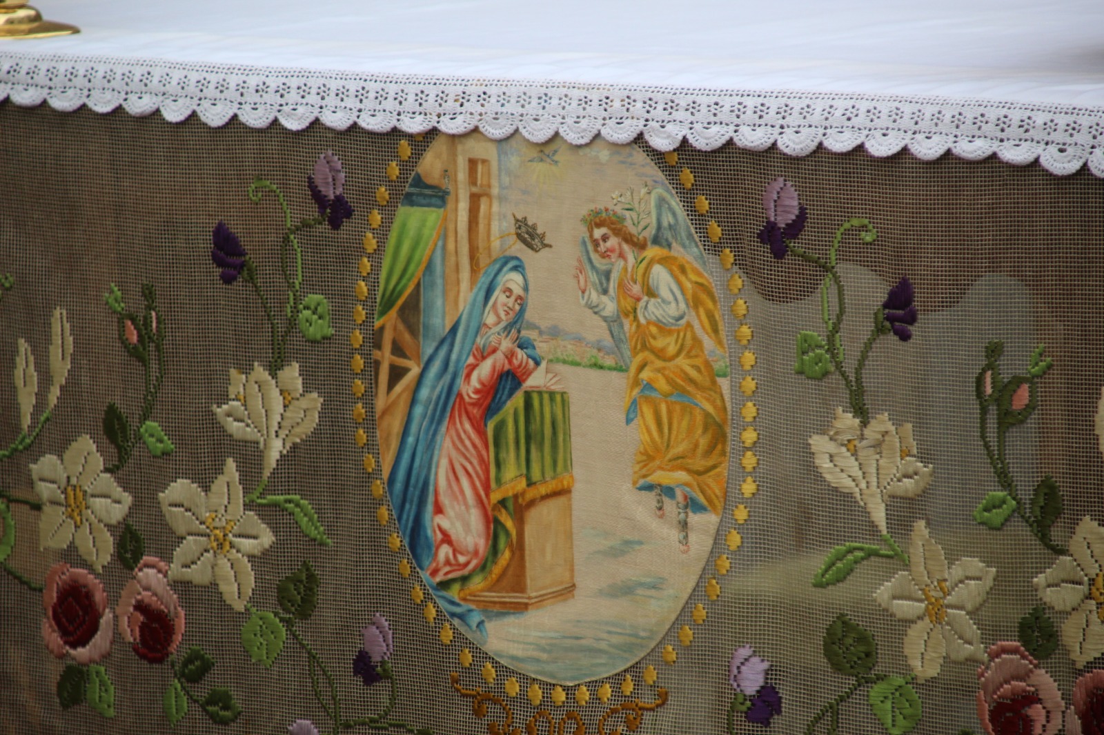 La sacra immagine, opera del maestro napoletano Silvestro Buono, fu realizzata nel 1582 e ritrae l’Arcangelo Gabriele, lo Spirito Santo e la Vergine nel momento dell’Annunciazione. Sullo sfondo si scorge un paesaggio palestinese e, in basso, i due committenti dell’opera di cui non si conoscono le identità.