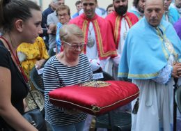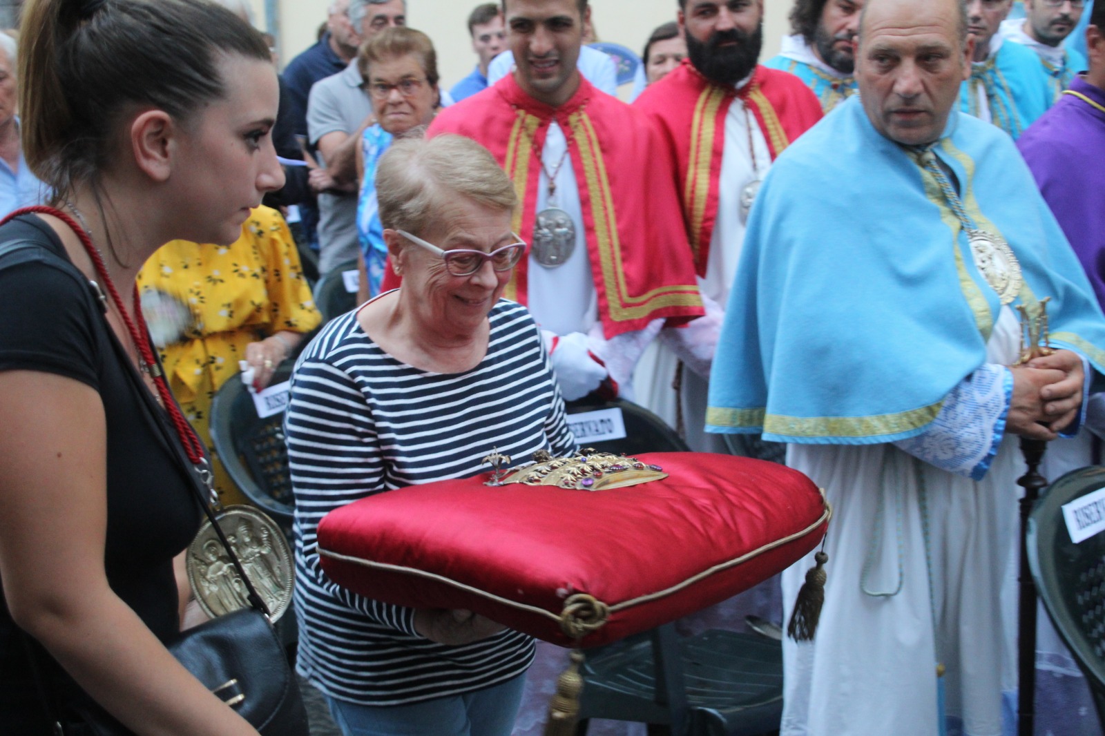 Durante la Celebrazione Eucaristica, dopo l’Omelia, una signora anziana e una bambina hanno portato al vescovo un diadema, quasi un testimone che i nostri antenati ci hanno consegnato e che noi, a nostra volta, affidiamo alle generazioni future, come ha detto il Parroco don Francesco Saverio Iaccarino.
