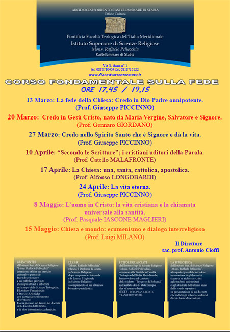 NellAnno della fede, lIstituto superiore di scienze religiose Mons. Raffaele Pellecchia promuove, a partire da oggi, un corso fondamentale sulla fede.