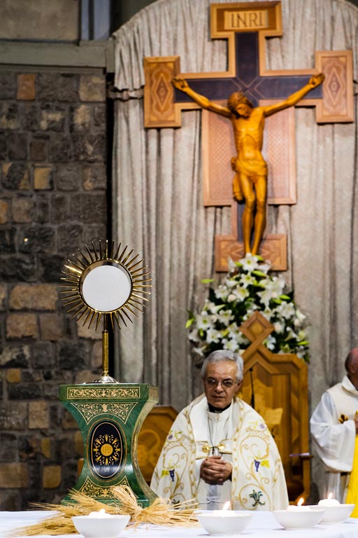 In questo dialogo con Gesù Sacramentato, lArcivescovo ha aggiunto: Aiutaci a scegliere sempre lultimo posto affinché nessuno si senta ultimo e aiutaci ad amare fino alla fine perché le nostre città, la nostra regione, il nostro Paese, il mondo intero possano sperimentare la forza dellamore che salva, la novità di un Dio che ha scelto di abitare in mezzo a noi per sempre.