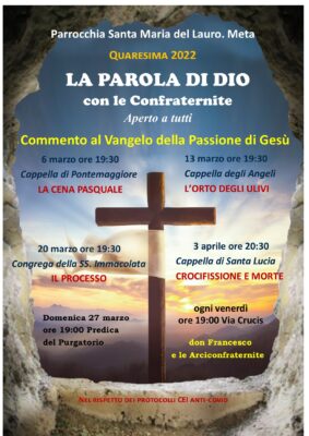Un cammino di comunione tra parrocchia e confraternite e tutti il popolo di Dio che vive la Quaresima come tempo forte e favorevole in preparazione alla Pasqua del Signore Gesù morto e Risorto per la nostra salvezza.