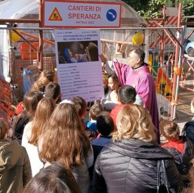I giovani e i volontari della parrocchia, che abbraccia anche la città di Castellammare di Stabia, porteranno in circa 800 famiglie una fascetta – simili a quelle utilizzate in cantiere con un biglietto e un invito. Chi vorrà, potrà scrivere un messaggio di speranza, un pensiero, un desiderio da attaccare poi in autonomia al cantiere in corso. I messaggi saranno poi condivisi il il 30 dicembre, con la Festa della Famiglia.