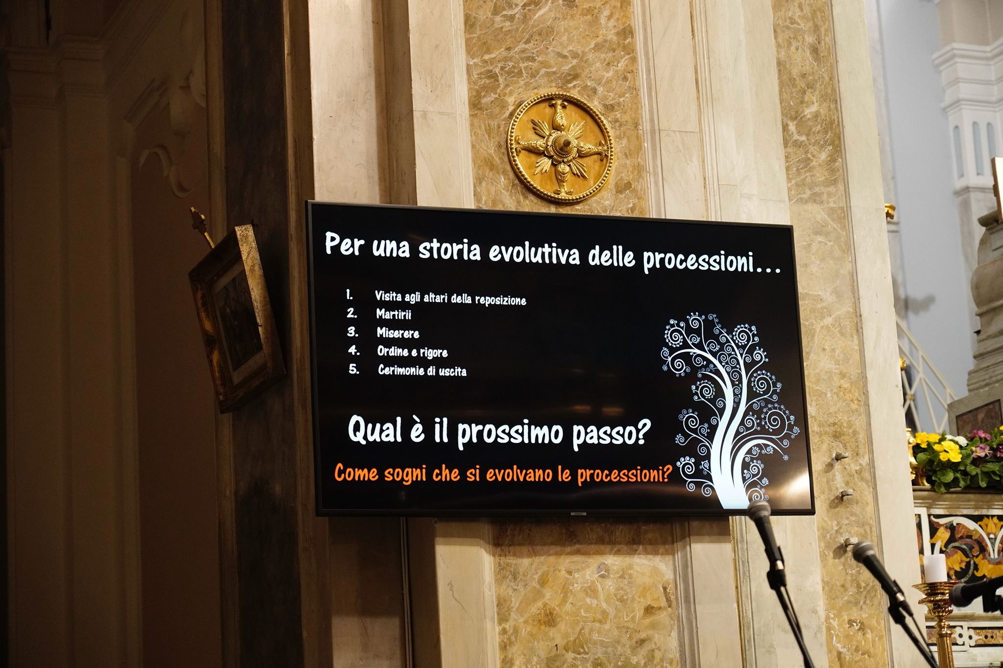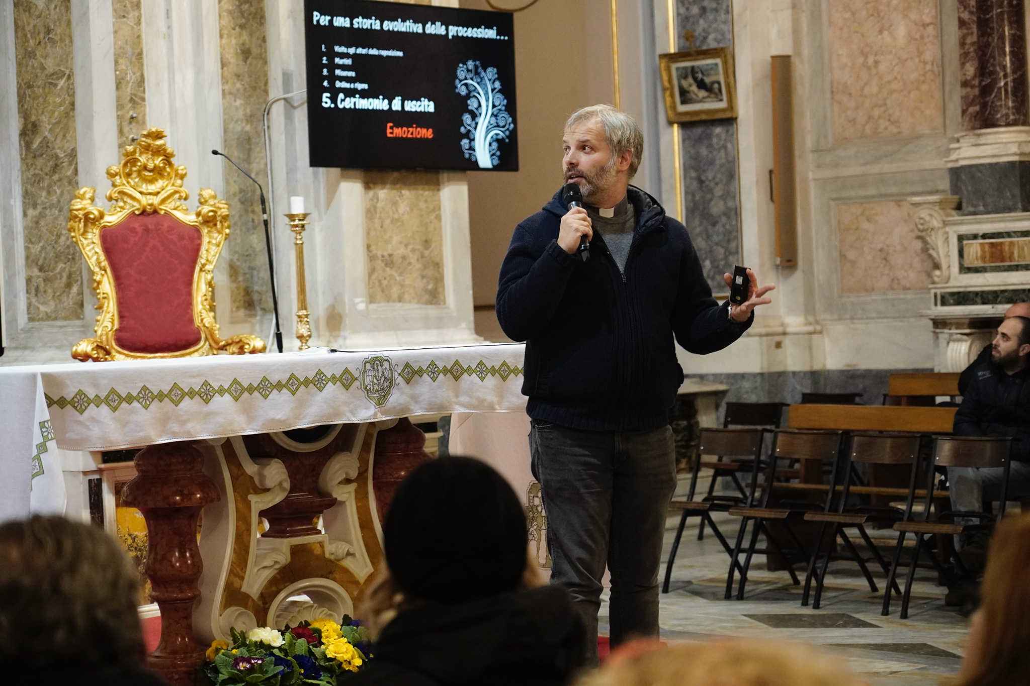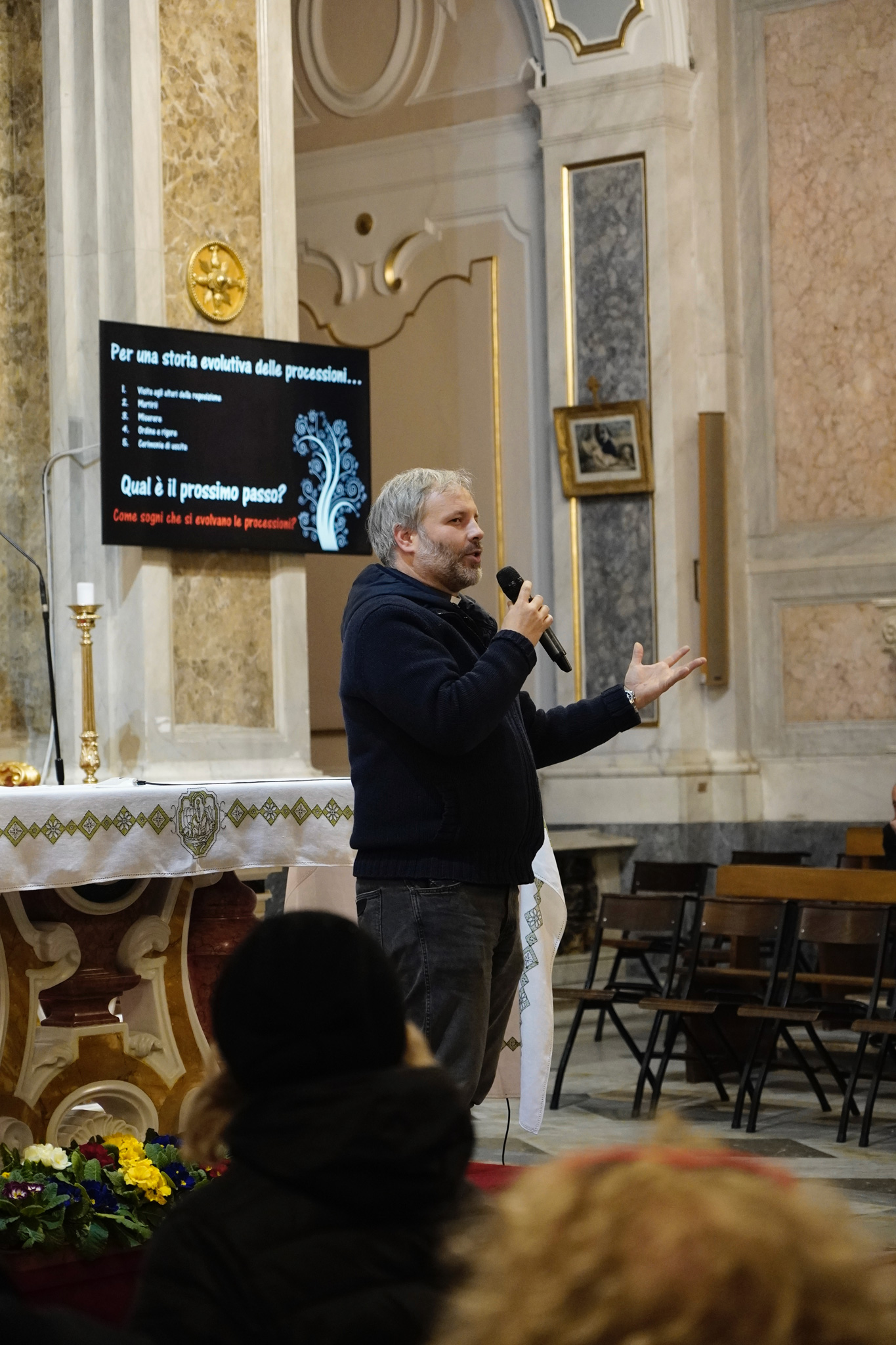 Il Parroco, Don Rito Maresca, nel corso dell’intervento di formazione ha ricostruito il percorso evolutivo delle nostre processioni, definendolo un “processo” che porta con sé un “progresso”.