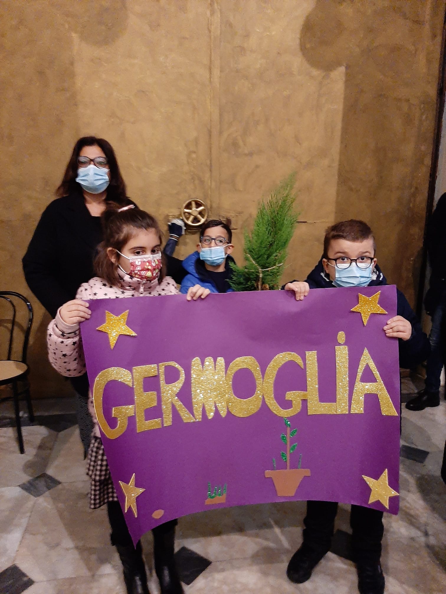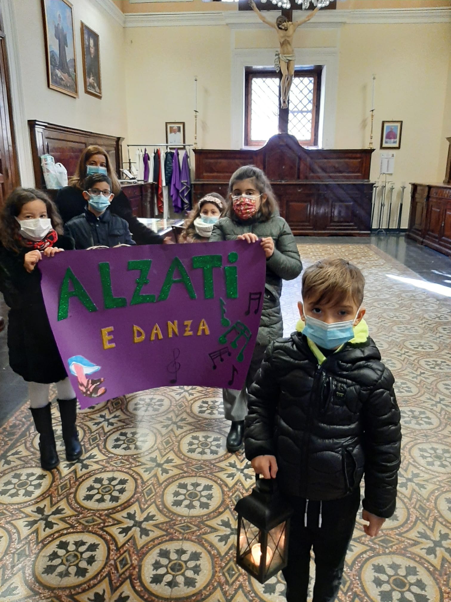 Sempre durante le 4 Settimane d’Avvento abbiamo realizzato per ognuna di esse quattro cartelloni e quattro segni da portare all’altare insieme ai nostri bambini del Catechismo .Ogni settimana il cartellone conteneva un imperativo preso dal Vangelo della Domenica,rivolto a tutti noi e in base ad esso abbiamo portato un segno che ricordava la parola : un piccolo cipresso, una cesoia, una pianta fiorita e infine un paio di sandali e uno strumento musicale.