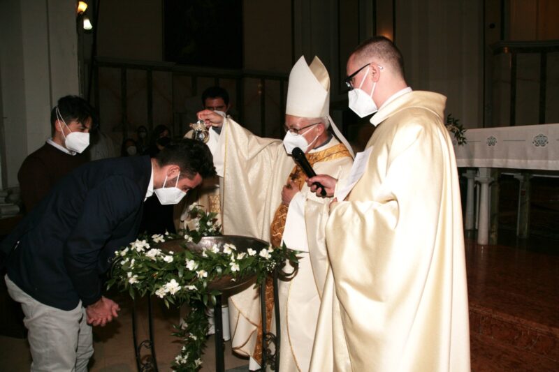 Il desiderio di Lorenzo M., di aderire alla chiamata del Signore, ed entrare a far parte del suo gregge, si è realizzato domenica sera, 2 maggio, nella parrocchia dello Spirito Santo. Lì, dalle mani del nostro Vescovo Francesco, che presiedeva la celebrazione, ha ricevuto il Battesimo, è stato segnato con il crisma per la Confermazione, ed ha potuto partecipare al banchetto Eucaristico.