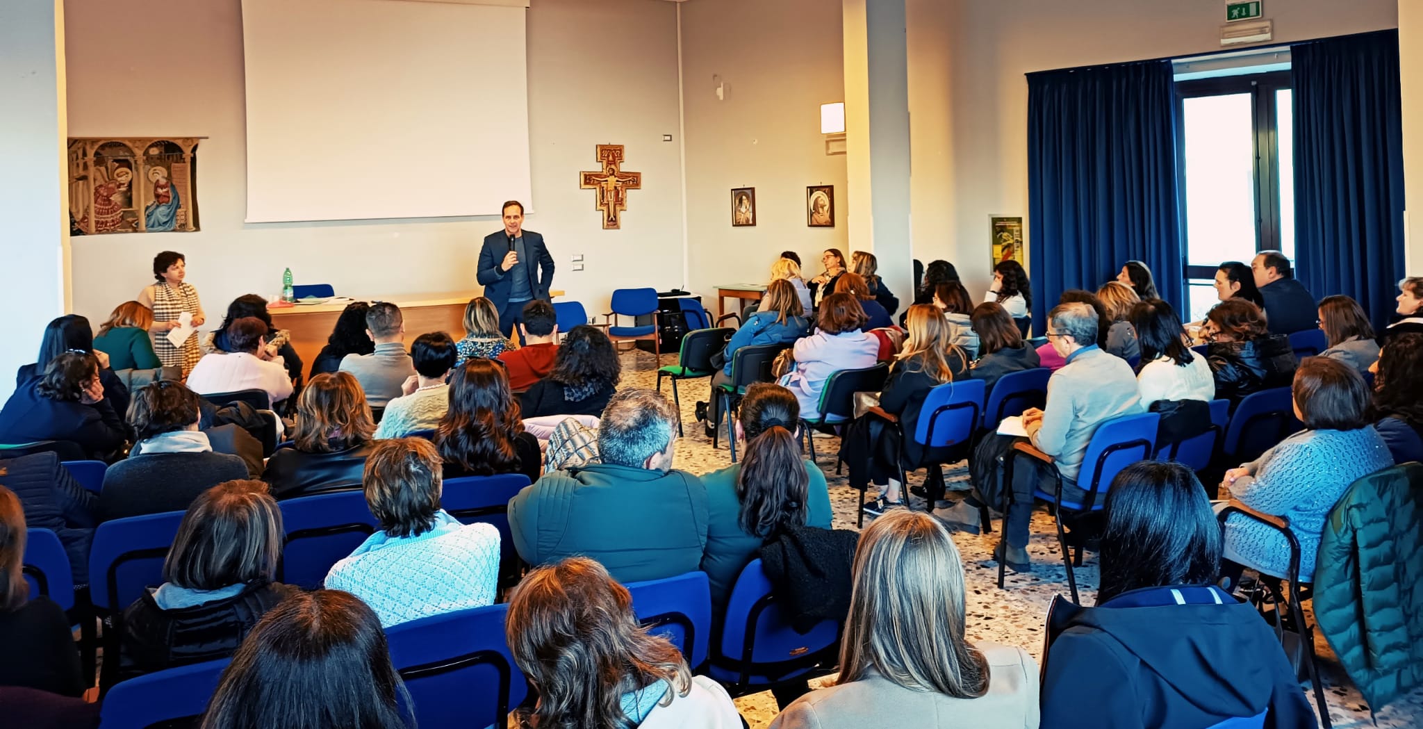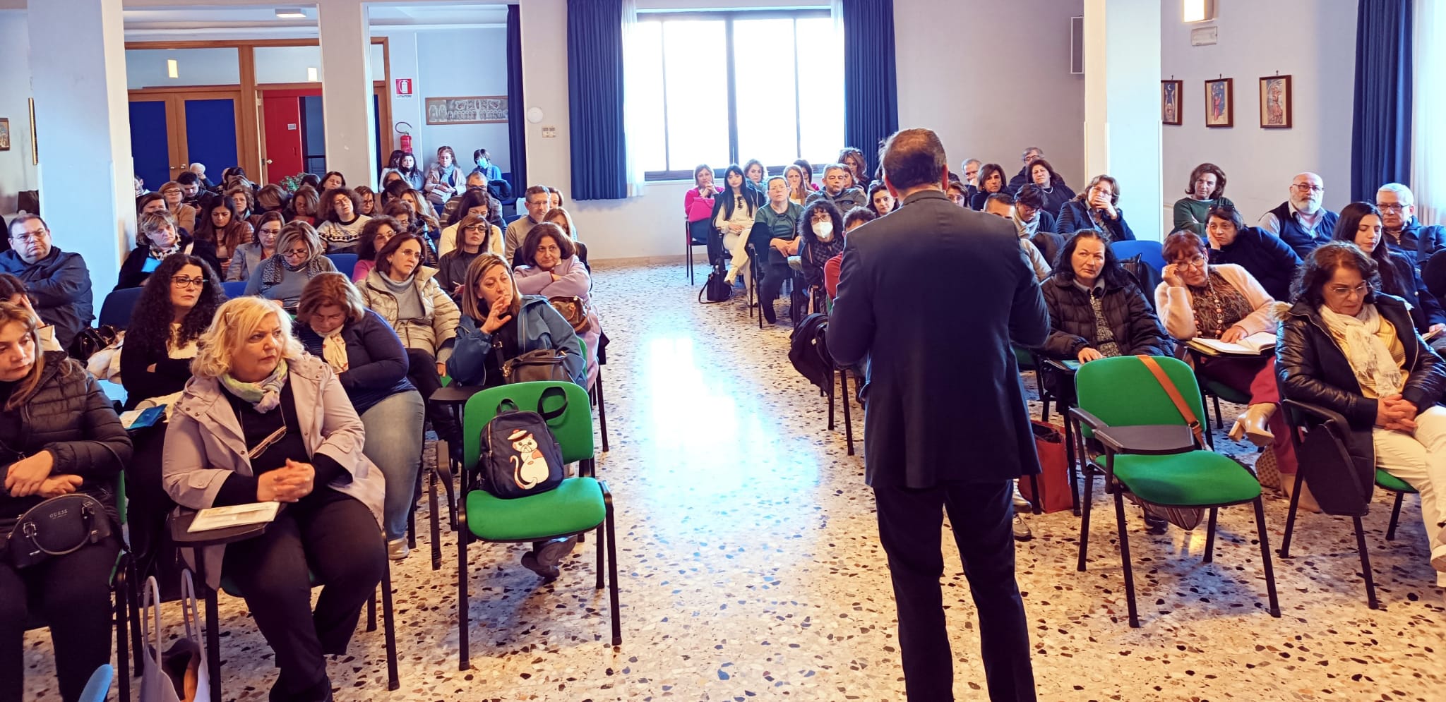 Il trauma del covid ha fatto emergere il mare fuori, universo di storie estreme, paure, difficoltà e senso di disagio, e il mare dentro, quello interiore che urla il desiderio di darsi una possibilità, che lancia la sfida di un nuovo umanesimo, di un rinascimento culturale. Cuore dell’incontro è stato l’invito accorato ad ascoltare il mare dentro dei nostri alunni, ad essere persone di parole e di Parola così da lasciare un segno, un respiro più lungo, profondo, vitale. Noi siamo chiamati a far guardare più lontano, ad instillare la voglia di mettersi in viaggio per misurarsi con la realtà ed essere se stessi; dobbiamo far esistere nuovi mondi, essere capaci di rendere il sapere un oggetto del desiderio in grado di mettere in moto la vita e di allargarne l’orizzonte. L’insegnamento non può e non deve essere ridotto a trasmettere informazioni e conoscenze ma deve mirare all’acquisizione della competenza fondamentale per la vita, l’imparare ad imparare che pone ciascuno nella possibilità concreta di realizzarsi e di trovare il suo posto nel mondo. La nostra ora di lezione può essere un piccolo miracolo se riusciamo a tirare fuori il meglio anche quando passa attraverso il peggio, se possiamo accendere un desiderio e contribuire a cambiare il senso dello stare a scuola.