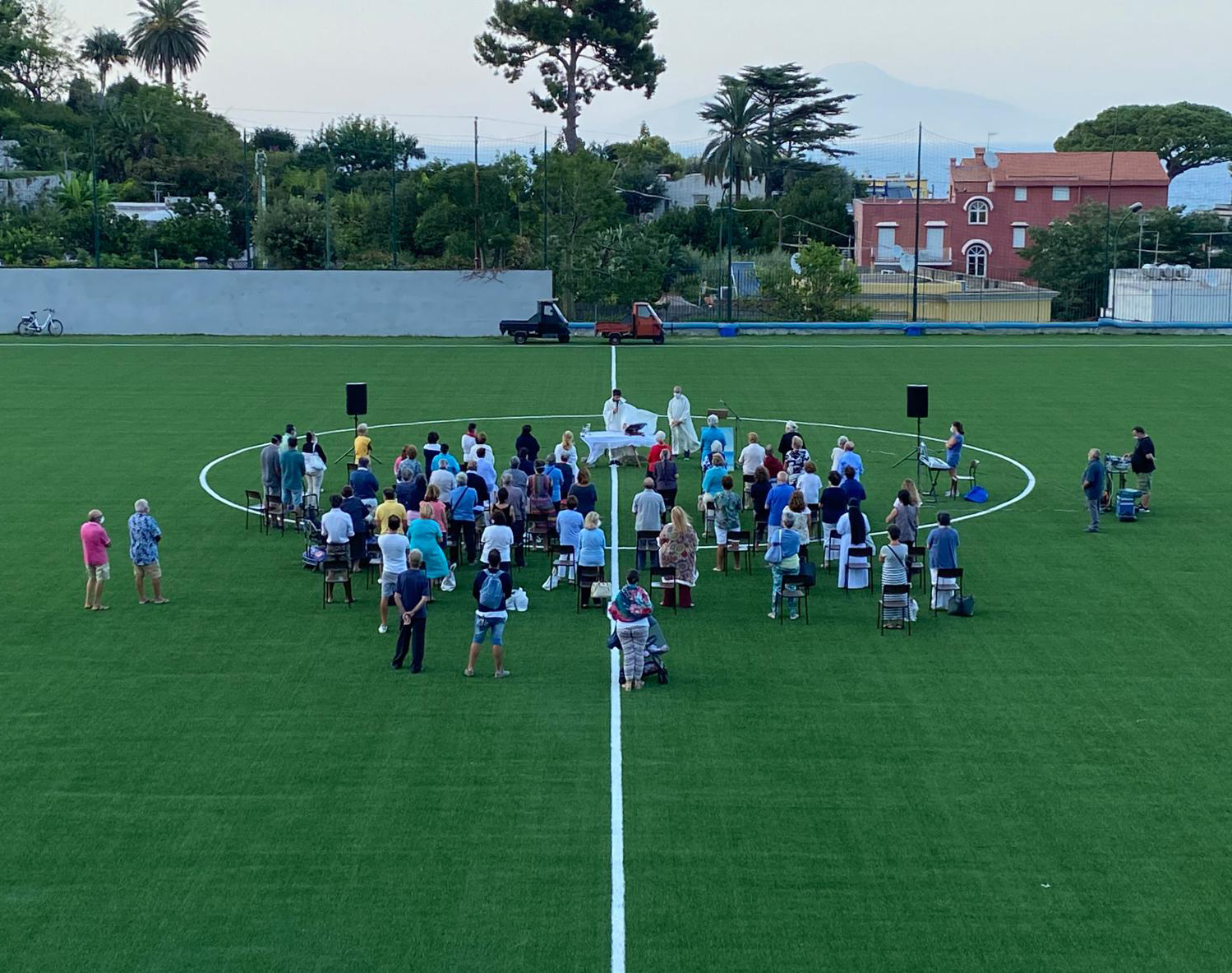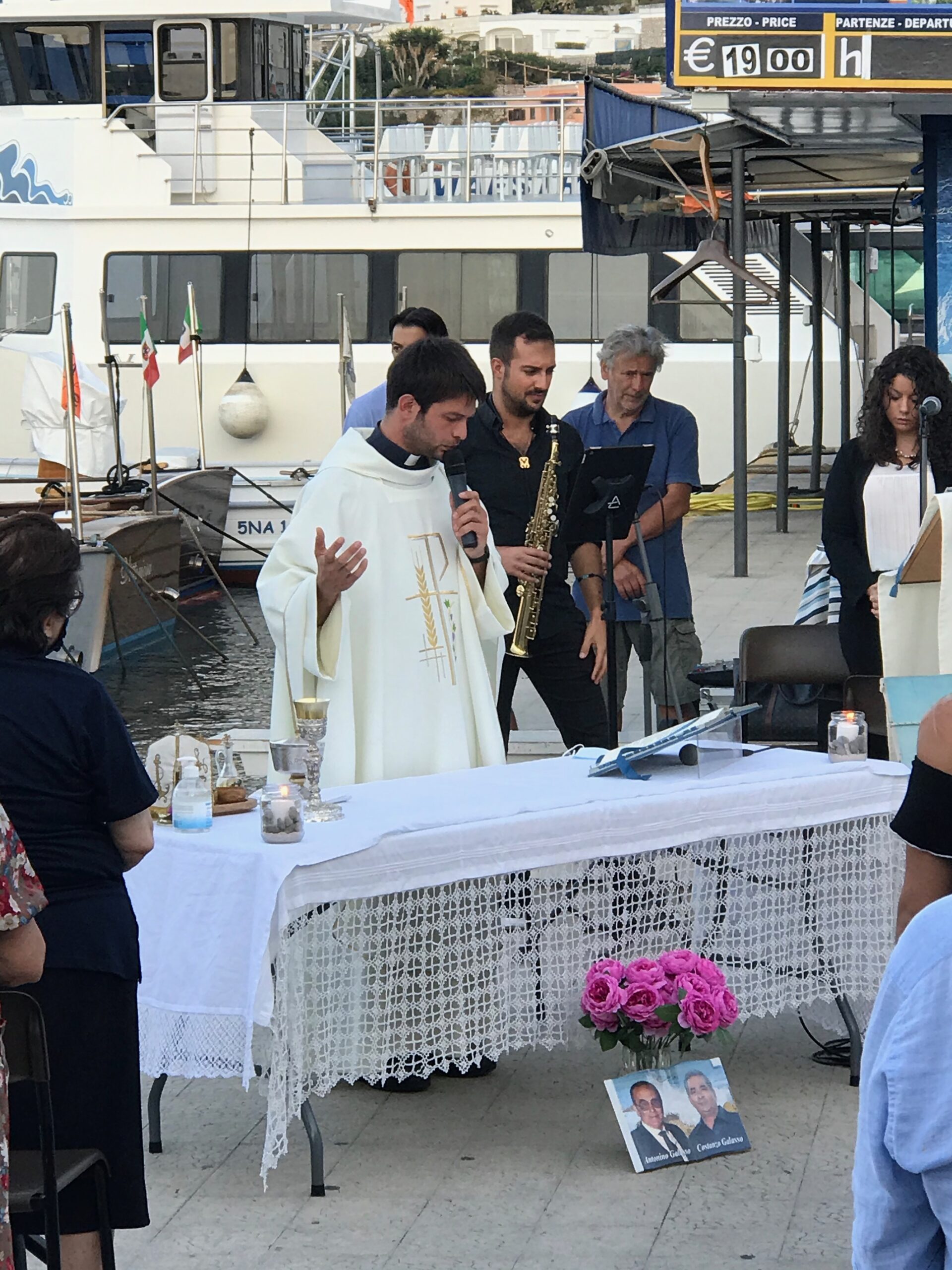 Nei quattro giorni che hanno preceduto quello della solennità, “la chiesa” è uscita potremmo dire dalle monumentali mura, per incontrare la popolazione, in quattro luoghi simbolo della comunità: il campo sportivo San Costanzo, il pontile dei motoscafisti alla Marina, il porto turistico, e infine la stessa chiesa di San Costanzo sede parrocchiale; in ognuno di questi giorni si è celebrata l’eucarestia in un clima di gioia vera, forte emozione e partecipazione; la festa ha avuto poi uno dei momenti più toccanti nella sera del sabato con l’adorazione notturna animata dai giovanissimi; difficile descrivere le emozioni provate da ciascuno di noi, con una leggera pioggia che faceva da cornice ed un tappeto di candele che ha illuminato tutta la basilica e convergeva sull’altare maggiore dove’era posto il Santissimo, riflessioni e canti invogliavano alla contemplazione e hanno reso quel momento indelebile.