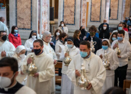 Non vogliamo infine dimenticare nessuno in questa solenne celebrazione, che ci introduce alla Pasqua. I diaconi, che si preparano ad accogliere nel loro piccolo collegio due nuovi membri, segno di una promettente stagione di vocazioni al servizio per il bene di tutti. I seminaristi, alle prese come tutti gli studenti con le fatiche e i disagi di questo tempo, ma desiderosi di crescere formandosi secondo le esigenze della società e della Chiesa. I catechisti e gli educatori, sottoposti a un supplemento di impegno nella ricerca di vie nuove perché nessuno sia trascurato nell’essere accompagnato a incontrare Gesù. Le famiglie, sottoposte a sforzi di ogni tipo e a grandi sacrifici, ma chiamate a riscoprire la centralità della loro missione anche nella comunità ecclesiale. Portiamo con noi nella preghiera gli anziani, gli operatori sanitari, i lavoratori e gli imprenditori, gli amministratori e i politici, le comunità scolastiche, i tantissimi giovani. Per tutti valgono le parole con cui Papa Francesco apre un suo recente libro, dal significativo titolo “Ritorniamo a sognare. La sfida verso un futuro migliore”: