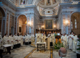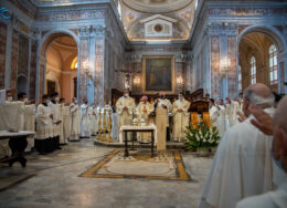 Tra poco, carissimi, benediremo l’Olio degli Infermi perché conforti quanti sono nella sofferenza, l’Olio dei catecumeni perché rinascano a vita nuova nella Chiesa, e l’Olio per il sacro Crisma perché tutto il Popolo di Dio sia consacrato e reso partecipe della missione di Cristo. Nel rito esprimeremo ciò che siamo, per puro dono divino, e ciò che ci impegniamo a diventare, per nostra crescente responsabilità. Riascoltiamo dunque le parole del profeta Isaia, che Gesù ha fatto sue a Nazàret e che oggi riconsegna a noi tutti qui riuniti per rappresentare la Chiesa pellegrina in Sorrento-Castellammare di Stabia: “per questo mi ha consacrato con l’unzione” (Lc 4, 18). Ecco come siamo aiutati a camminare sulle vie della missione e della profezia: il dono dell’unità ci costituisce nella liturgia come l’unico Corpo di Cristo, affinché possiamo testimoniare nella storia del nostro tempo la sua azione salvifica. È Lui che ci dà forza nella prova. È Lui che ci unisce a sé facendo armonia delle nostre diversità. È Lui che ci invia nel mondo perché nessuno resti prigioniero del male. La varietà di carismi e ministeri deve essere sempre più riconosciuta, valorizzata, promossa. Solo una ministerialità diffusa ci consentirà di esprimere la ricchezza dei doni ricevuti e la gioia di metterli al servizio di tutti, in particolare di quanti sono oppressi dalle tante forme di schiavitù che oggi vanno diffondendosi. Come non chiedere a Voi, amatissimi consacrati e consacrate, di far brillare il carisma della vostra vocazione alla santità? Voi lo sapete: non è per Voi stessi o solo per le Vostre famiglie religiose che siete chiamati a vivere la fraternità. È un’anticipazione del Regno, un segno escatologico della vita nuova in Cristo, un annuncio profetico dell’unità di tutto il genere umano che la Chiesa deve contribuire ad affrettare. Voi occupate un posto speciale nel cuore di Cristo e in quello di ciascuno di noi!
