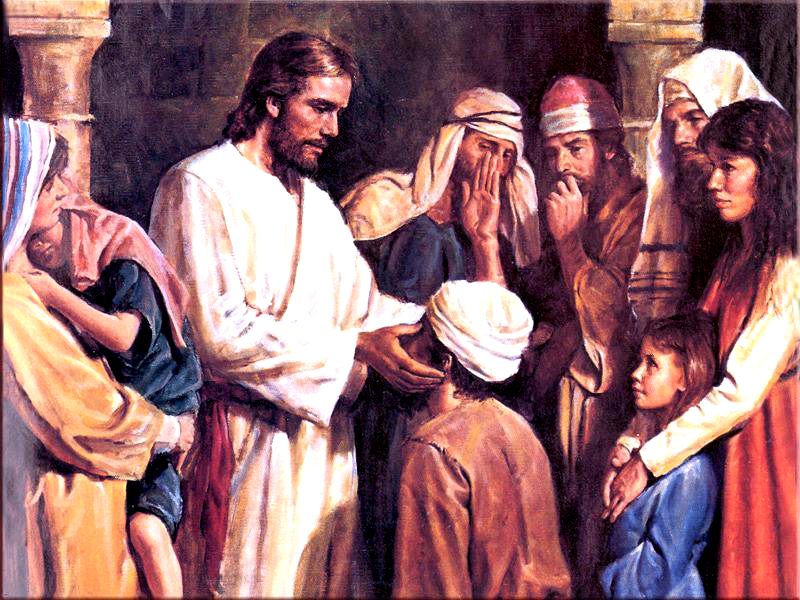 Gli portarono un sordomuto e lo pregarono di imporgli la mano. Lo prese in disparte, lontano dalla folla, gli pose le dita negli orecchi e con la saliva gli toccò la lingua; guardando quindi verso il cielo, emise un sospiro e gli disse: «Effatà», cioè: «Apriti!». E subito gli si aprirono gli orecchi, si sciolse il nodo della sua lingua e parlava correttamente.