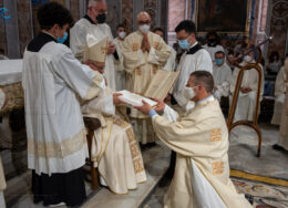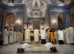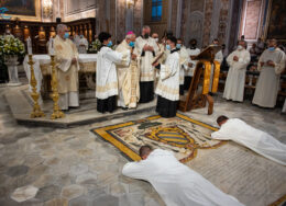 I diaconi si sono inginocchiati, adesso sono lì, con il volto che guarda il pavimento della Cattedrale, scrutano il loro cuore, si preparano a vivere un tempo nuovo, mentre arriva forte l’invito di Mons.Alfano: “Annunciate il vangelo nelle frontiere del nostro tempo, attraverso la vostra vita ed e il vostro servizio. Partite dai margini, siate come operai nella vita del Signore, portate la buona notizia e non vi scoraggiante se troverete difficoltà, abbiate coraggio” – conclude.
