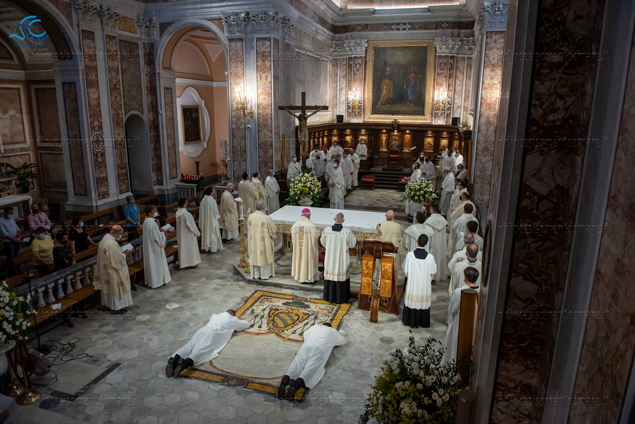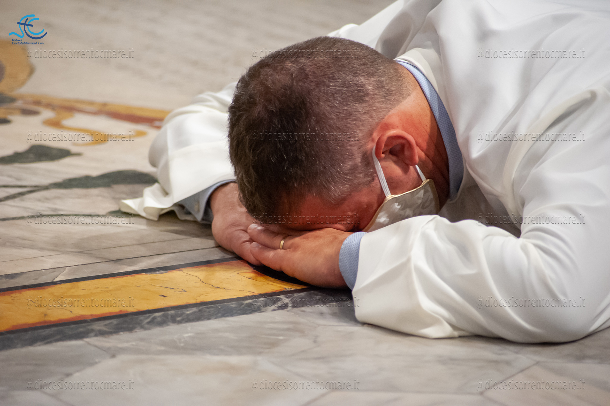 I diaconi si sono inginocchiati, adesso sono lì, con il volto che guarda il pavimento della Cattedrale, scrutano il loro cuore, si preparano a vivere un tempo nuovo, mentre arriva forte l’invito di Mons.Alfano: “Annunciate il vangelo nelle frontiere del nostro tempo, attraverso la vostra vita ed e il vostro servizio. Partite dai margini, siate come operai nella vita del Signore, portate la buona notizia e non vi scoraggiante se troverete difficoltà, abbiate coraggio” – conclude.