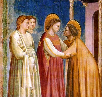 Entrata nella casa di Zaccarìa, salutò Elisabetta. Appena Elisabetta ebbe udito il saluto di Maria, il bambino sussultò nel suo grembo. Elisabetta fu colmata di Spirito Santo ed esclamò a gran voce: «Benedetta tu fra le donne e benedetto il frutto del tuo grembo! A che cosa devo che la madre del mio Signore venga da me? Ecco, appena il tuo saluto è giunto ai miei orecchi, il bambino ha sussultato di gioia nel mio grembo. E beata colei che ha creduto nell’adempimento di ciò che il Signore le ha detto».