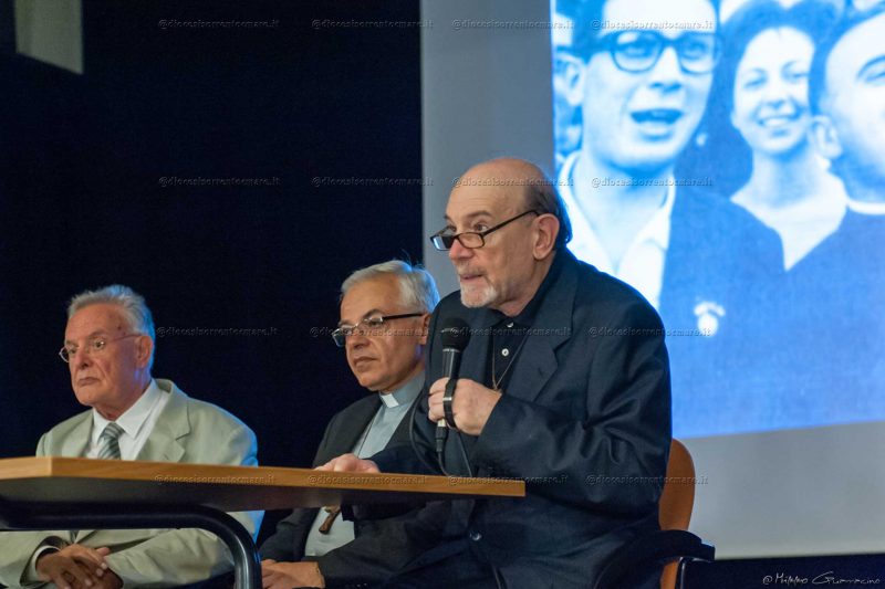 Dopo Don Antonio ha preso la parola il Prof. Casavola, che ha conosciuto Mons. Zama fin dagli anni giovanili. Dal suo racconto (file audio del contributo) è stato messo in luce quel mondo di fermenti spirituali, teologici e culturali che, operante in Napoli, in Italia e nel Mondo, giungerà a maturazione nella stagione del Concilio. Mons. Zama era, in quegli anni, Cappellano Universitario nella Chiesa di San Marcellino, in Napoli. Lì si riuniva il mondo universitario, per la Messa domenicale e per le altre celebrazioni nei tempi forti dell’anno. É stata tratteggiata la figura di un sacerdote dedito alla confessione e alla direzione spirituale che orientava alla libertà ed alla responsabilità. Un sacerdote capace di attualizzare il Vangelo, con unesposizione pacata e coerente. Don Zama, come da allora continueranno a chiamarlo amici e discepoli, aveva un’attenzione particolare per la concretezza dell’esistenza. Gli studi teologici nei seminari del tempo offrivano una formazione che era meno di S.Tommaso e più della seconda scolastica. Erano anche gli anni dell’umanesimo integrale di Maritain e del personalismo comunitario di Mounier. Don Zama non si legava a nessun autore, ma da napoletano sapiente, tutto rielaborava. Egli fu un intellettuale a tutti gli effetti, curioso di tutto e tutto cercava di conoscere ed approfondire. Il Prof.Casavola ha ricordato che, diventato Assistente centrale della FUCI, Don Zama cominciò a visitare tutte le città che erano sedi di università, allacciando rapporti di stima e cordialità con tutti i docenti ed interessandosi a tutte le problematiche del mondo accademico italiano.