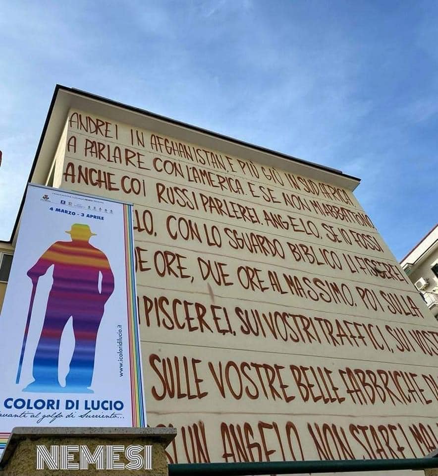 “Lo scorso anno eravamo già in atto con una serie di iniziative volte ad omaggiare Lucio. Il 4 marzo 2021, si tenne una messa in suo ricordo presso la chiesa dell’Annunziata e quel giorno stesso venne attivata anche la filodiffusione su Corso Italia. Successivamente, ci inserimmo nel programma comunale di “Natale 2021 – Mi illumino di inverno”, con le luminarie che riprendevano la canzone Caruso. Fino ad arrivare ad oggi, siamo onorati che Jorit abbia inaugurato la manifestazione, per lui è stato un felice ritorno in penisola, molti anni fa quando non era così famoso come oggi, aveva omaggiato infatti la frazione di Maiano (Sant’Agnello), realizzando ben quattro opere, tra cui una proprio di Dalla”.