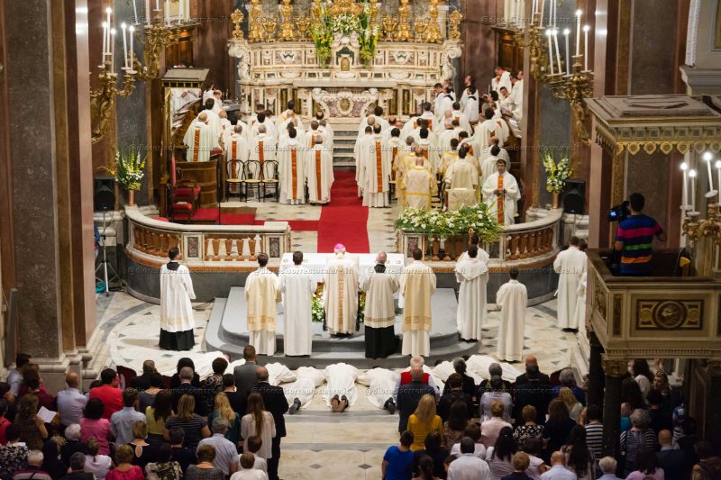 Per l’imposizione delle mani del nostro arcivescovo, lo Spirito Santo è sceso su questi nove giovani, sul loro cuore pieno di attesa e timore, gioia e trepidazione, per metterli in una nuova, profonda, definitiva relazione con Gesù; per renderli ministri ordinati della Parola, dell’altare, della carità; per concedere loro la grazia di partecipare all’amore di Gesù per la sua Chiesa.