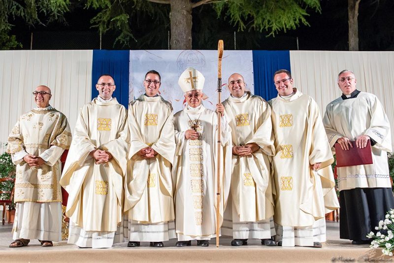 È il momento di ascoltare il Signore. Così è nata la Chiesa, così cresce la Chiesa, tutti insieme, nello stesso luogo. Non è un fatto superficiale esteriore, emotivo. Non è questione di spazi, è molto di più. È lesperienza che ci precede, è il Signore che ci unisce, è il dono della comunione su cui possiamo cominciare a muovere i primi passi, a crescere, fino a dire, secondo le varie vocazioni di cui è ricca la Chiesa, grazie al dono dello Spirito: Sì, eccomi! Ti seguirò dovunque tu vada, ha detto nellomelia monsignor Alfano. Lo dite anche voi stasera, carissimi amici: Alessandro, Michelangelo, Roberto, Salvatore ha sottolineato larcivescovo -. Questa esperienza non è temporanea, non appartiene a noi, non è legata ai meriti, alle caratteristiche di ciascuno. È molto di più: è lagire di Dio. Così nasce la Chiesa. È questo vento che ci accompagna stasera, vento che sta a indicare la forza di Dio, che viene e che non si ferma neanche dinanzi ai nostri ostacoli. È questo vento che affratella, trasforma, fa toccare con mano la potenza di Dio, il Suo Spirito. Sperimentiamo nella nostra carne che il passaggio di Dio ci trasforma. Questa è la Chiesa e voi siete chiamati, allinterno di essa per il dono dello Spirito che invocheremo tutti insieme abbondantemente su di voi, a essere per sempre, per tutti, segno concreto, memoriale vivente, strumento di questa crescita della comunità, che come famiglia, come popolo, è sempre più assimilata al Cristo Crocifisso e Risorto.