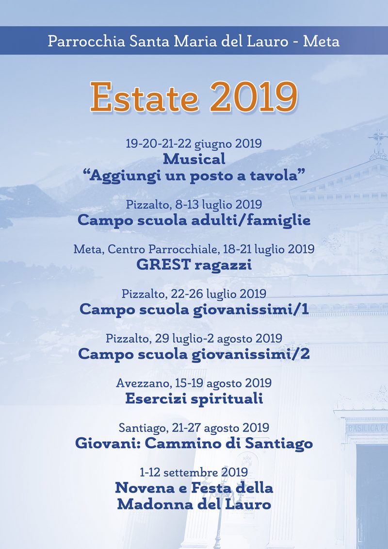 Dopo l’esperienza del Musical, coinvolgente e appassionante, i locali del centro parrocchiale di Meta sono diventati un “via vai” di animatori che si adoperano ogni sera per preparare i campi scuola assieme a don Alfonso. Mentre don Francesco è indaffarato nella preparazione del campo adulti/famiglie che sta per iniziare, sia gli animatori dei ragazzi che quelli dei giovanissimi sono alle prese con fogli A4 per le ultime rifiniture contenutistiche dei campi scuola e con cartelloni, festoni e tanto altri per preparare i momenti ricreativi e ludici dei campi-scuola che quest’anno saranno vissuti a Pizzalto (vedi locandina), una località a 1400 metri di altezza sulle montagne abruzzesi. Mentre il campo scuola ragazzi (scuole medie) come da qualche anno si terrà sotto forma di “grest” (gruppi estivi) nel mese di luglio nel centro parrocchiale dove i ragazzi staranno assieme da mattino a sera con momenti di riflessione e svariate esperienze di gioco. Intanto i giovani si preparano al cammino di Santiago che vivranno a fine agosto, ne vediamo qualcuno camminare al mattino presto per le strade del paese con don Alfonso per prepararsi a questa esperienza impegnativa ma certamente ricca di frutti umani e spirituali.