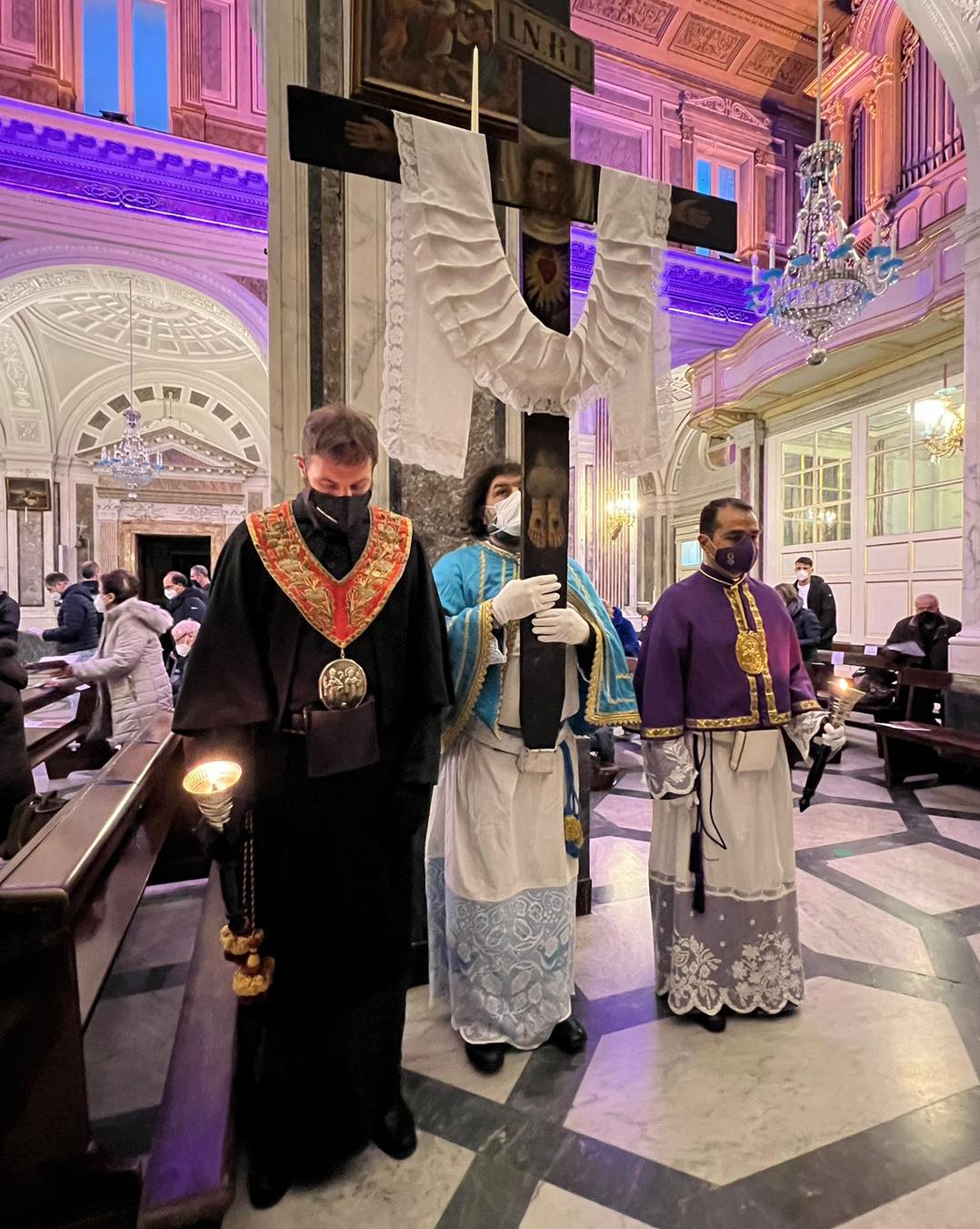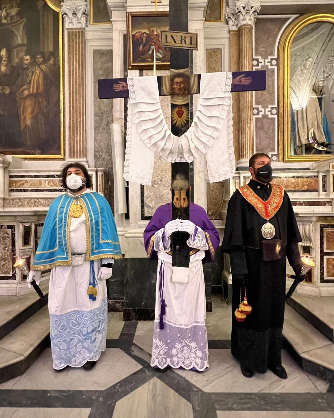 Ci siamo ritrovati Venerdì sera nella nostra Chiesa Madre, l’antica Chiesa Parrocchiale dei Ss. Prisco e Agnello, convocati dalla Parola proclamata, per percorrere insieme al Nostro Parroco Don Francesco Saverio Iaccarino e i Governatori della Confraternita del Sacro Cuore di Maria e di San Giuseppe, Nello Prudente e dell’Arciconfraternita del SS Sacramento e Natività di Maria Vergine, Michele Guastaferro, la Via della Croce di Gesù, per il Venerdì di Passione, Venerdì dell’ Addolorata.