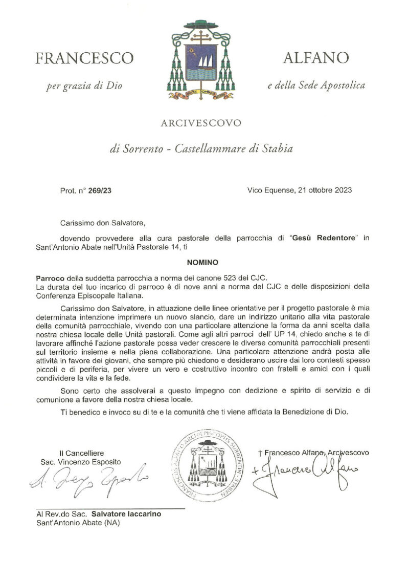 Nomine 21 Ottobre 2023 Parroco Gesù Redentore – Sant’Antonio Abate Don Salvatore Iaccarino, in data 21 ottobre 2023, è stato nominato Parroco della parrocchia Gesù Redentore, Sant’Antonio Abate FacebookWhatsappGoogleTwitterLinkedinEmailPrint