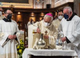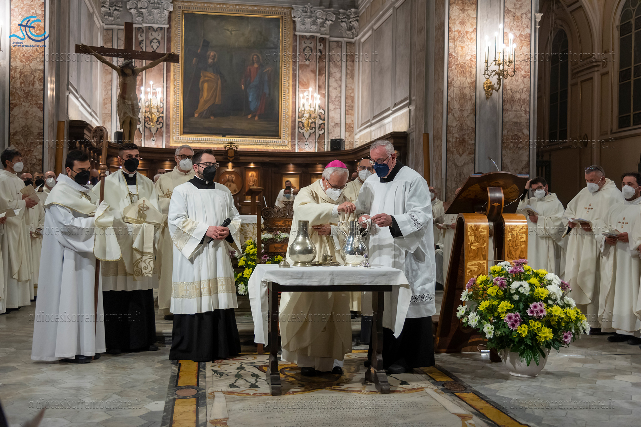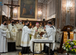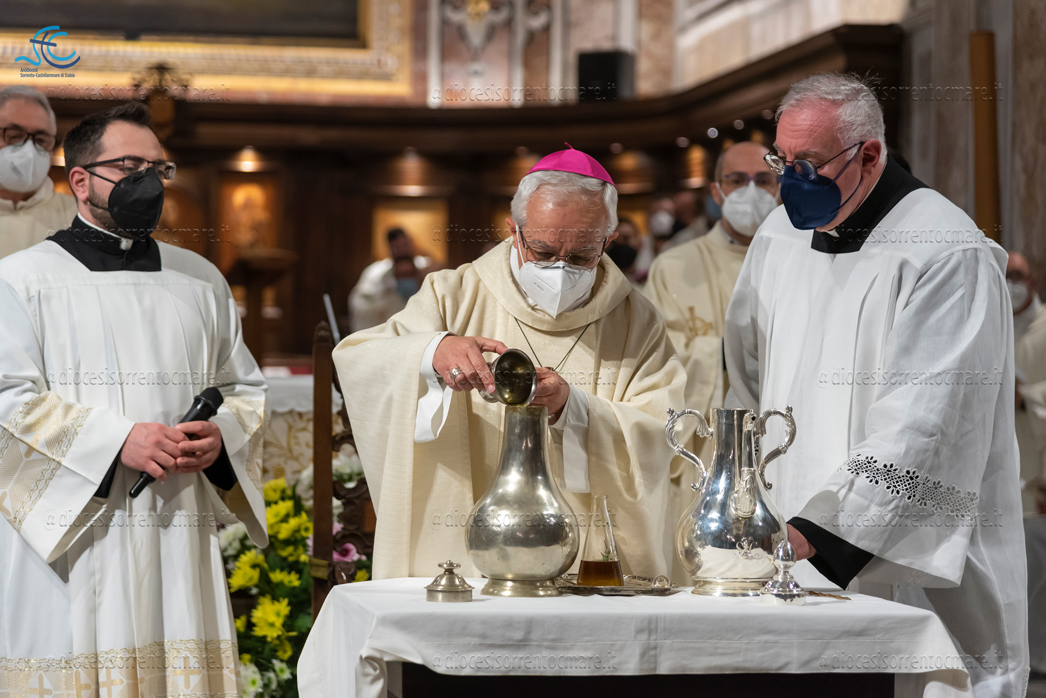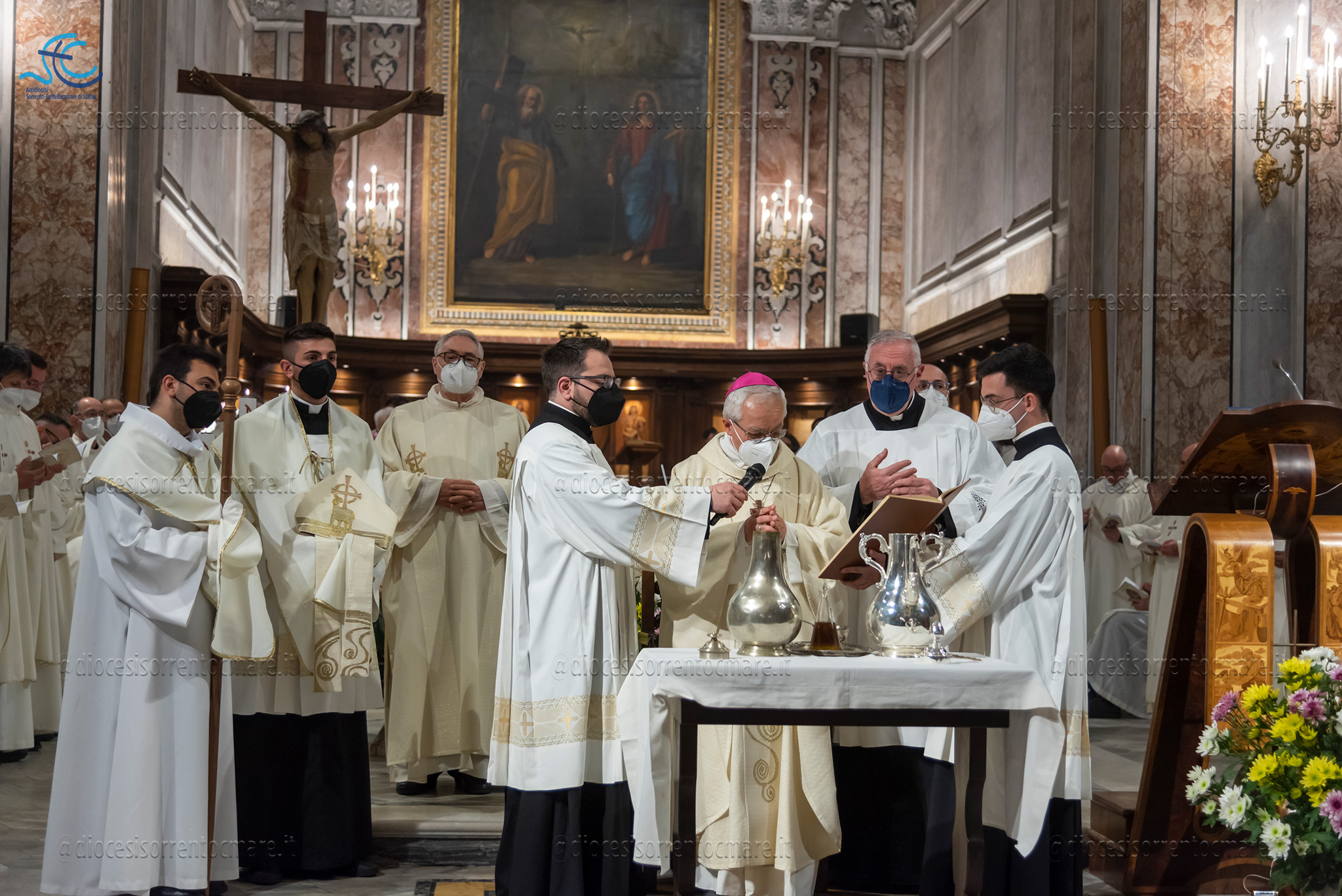 Si è celebrata ieri, presso la Cattedrale dei Santi Filippo e Giacomo di Sorrento, la messa del Crisma presieduta da Mons. Francesco Alfano. Una chiesa gremita, vestita di bianco e promesse rinnovate, ha accolto i fedeli e un centinaio di consacrati, presenti anche le monache contemplative.