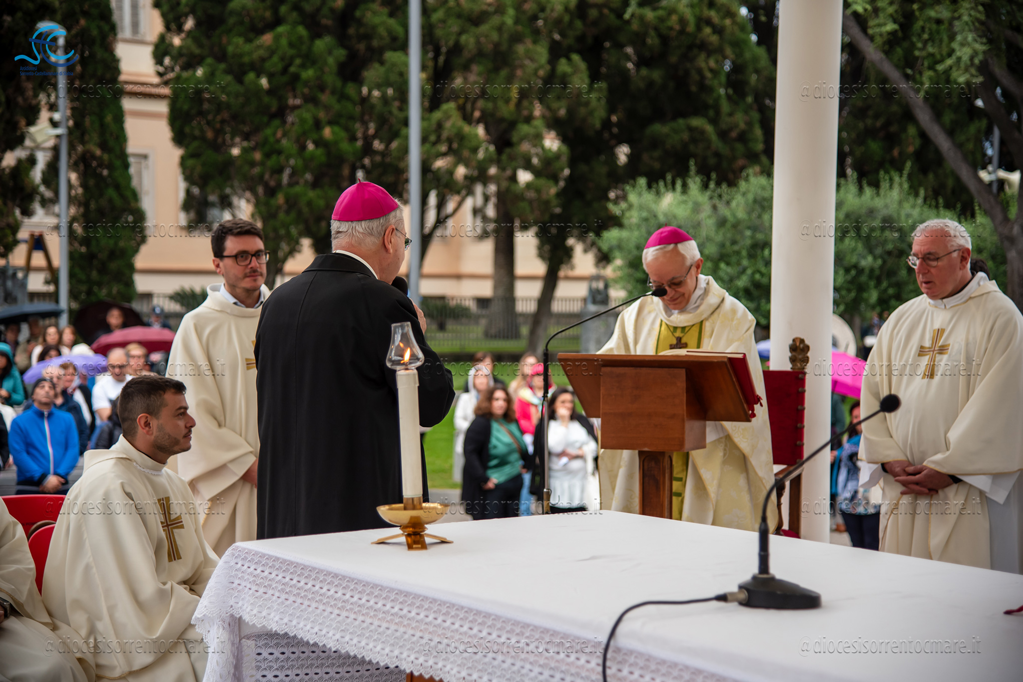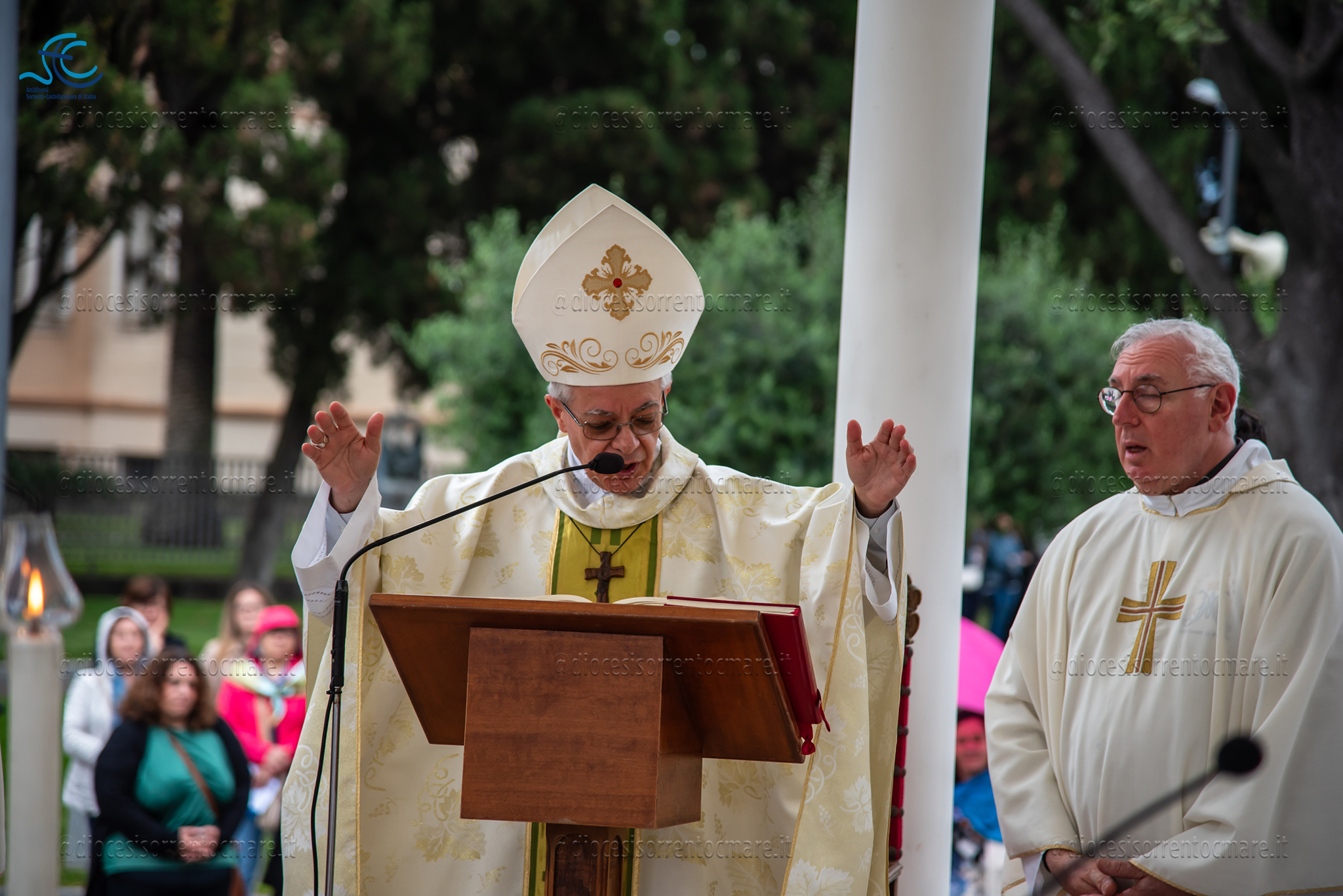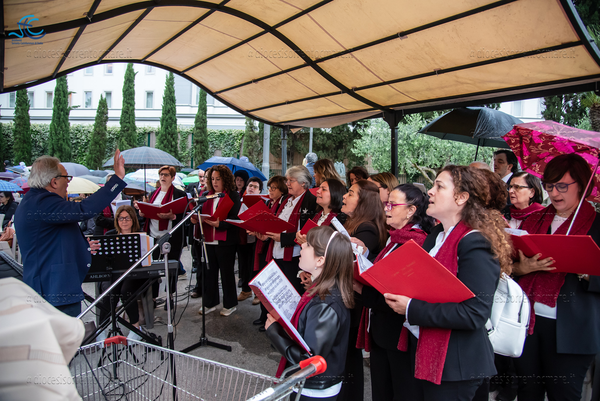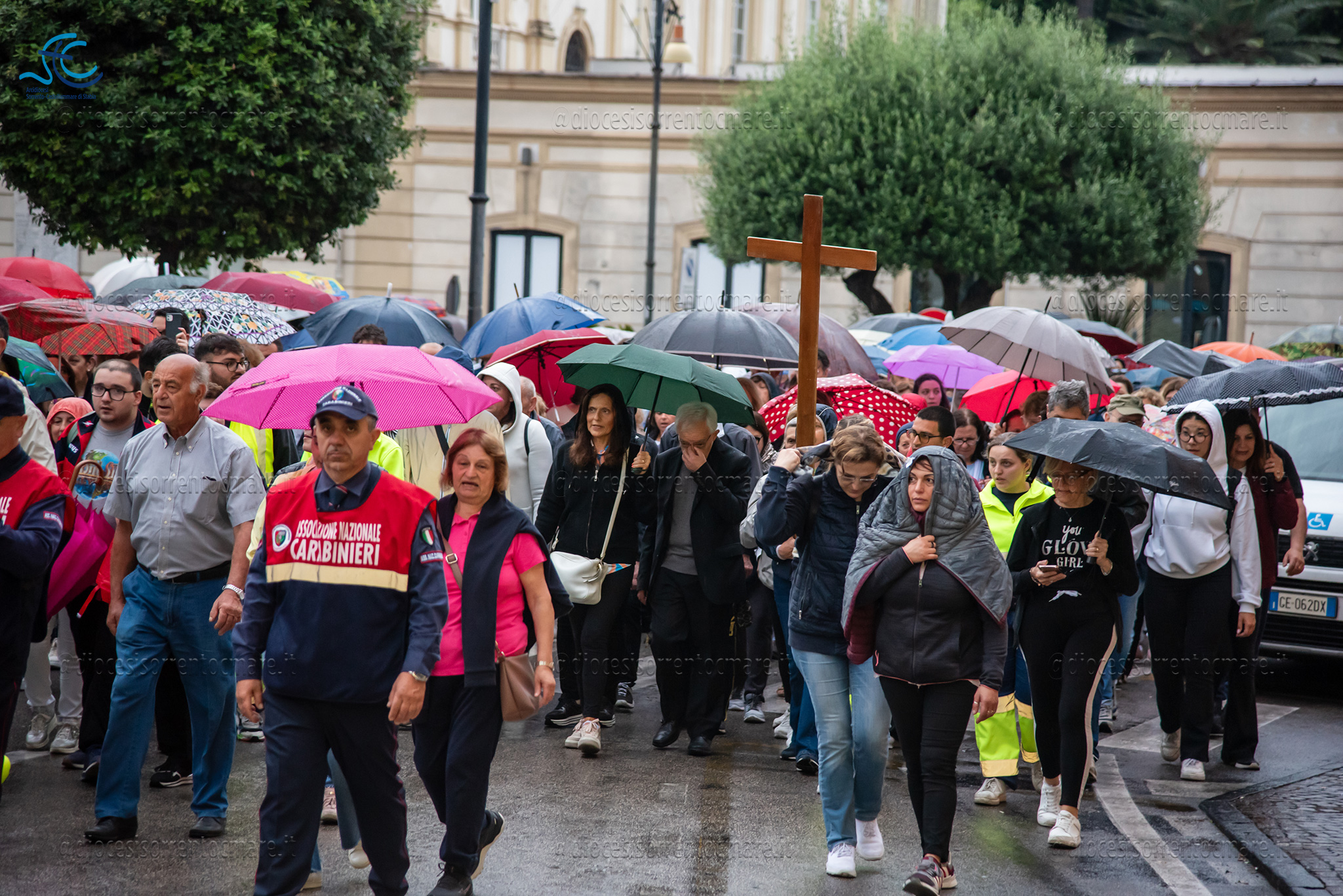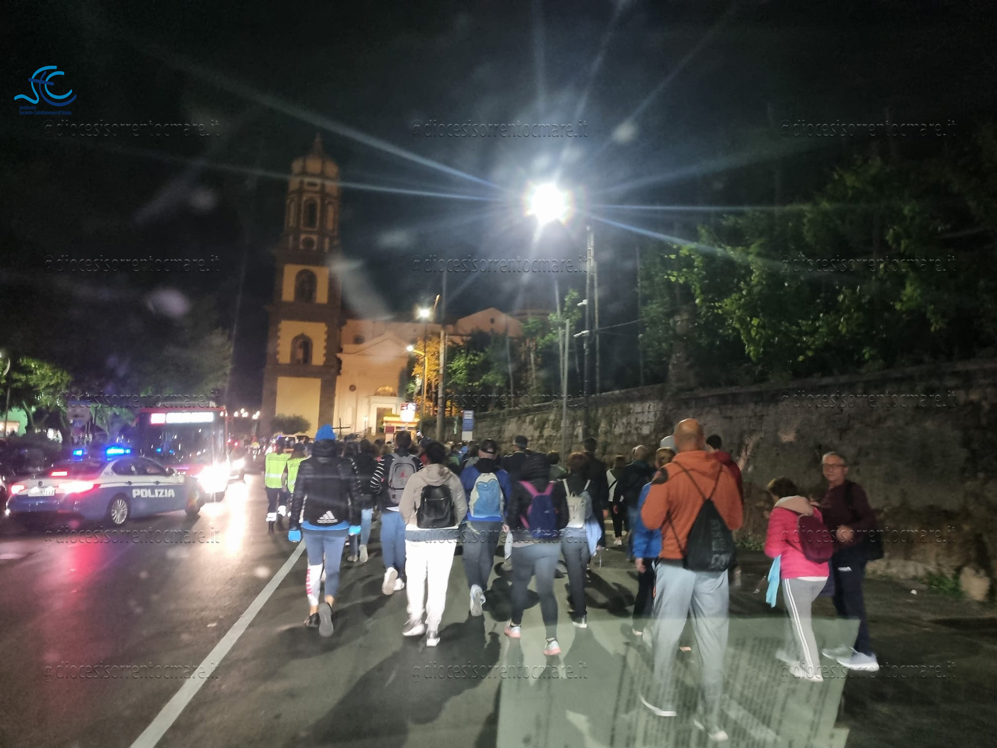 Si è rinnovata la tradizione del pellegrinaggio a piedi, promosso nel mese di maggio, dall’Arcidiocesi di Sorrento – Castellammare di Stabia, fino al Santuario Mariano di Pompei. La pioggia non ha fermato centinaia di fedeli che questa notte si sono messi in cammino per raggiungere il Santuario della Beata Vergine; all’arrivo più di 2000 sono stati i fedeli che hanno preso parte alla celebrazione presieduta da Mons. Francesco Alfano.