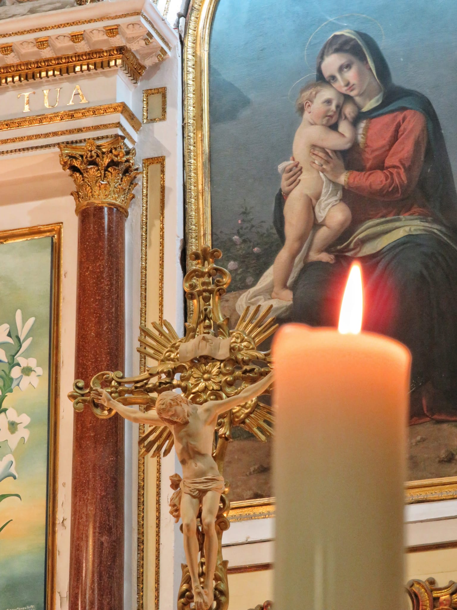 Il Cero è stato riposto al fonte battesimale, luogo della nostra rinascita in Cristo per mezzo delle acque del Battesimo.