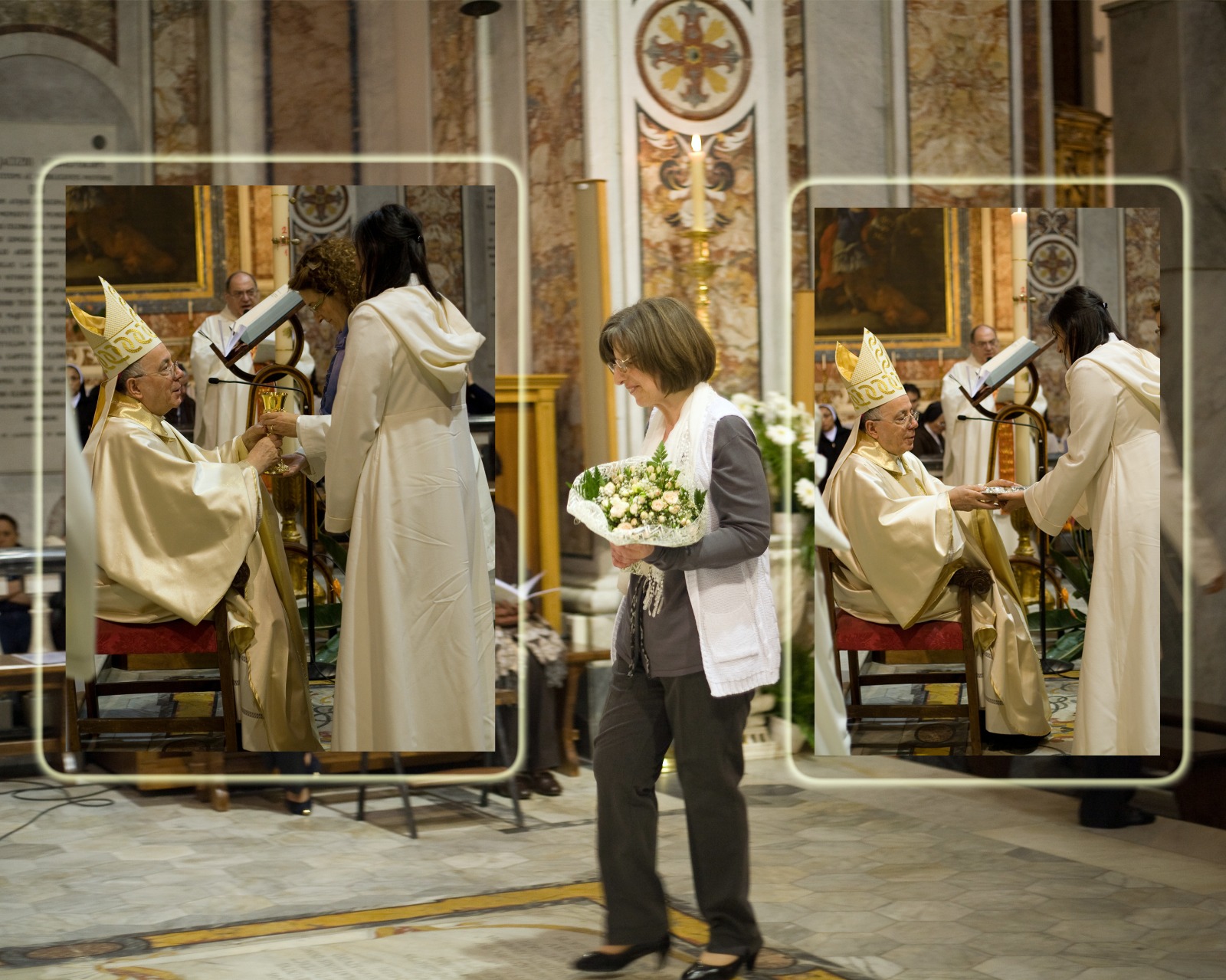 La storia di don Carmine con l’Ordo virginum inizia insieme alle prime due consacrazioni. Era il 2004, fu Mons. Cece ad chiedergli di curare la celebrazione per la consacrazione di Laura e Maria. Quello fu il primo approccio ufficiale di don Carmine a questa particolare forma di vita consacrata, così unica nel suo genere, ma volontariamente e sporadicamente, mosso dal suo personale desiderio di ricerca, don Carmine l’aveva già presa a cuore, quando qui non era che pochi tratti appena accennati. Per la nostra Diocesi – e soprattutto per Mons. Cece – l’Ordo era una vera e propria novità, e fu sottoposto ad un grande e iniziale sforzo di prudenza e discernimento, prima di farlo nascere, silenziosamente e nel nascondimento. Trascorse qualche anno così, con un Ordo virginum dai lineamenti ancora un po’ abbozzati, dove queste prime due sorelle maggiori camminavano affidandosi al vescovo e confidando solo nel Signore. Nel 2011 maturò anche il tempo della consacrazione di Brigida. Riconoscendo sempre più la bellezza unica di questa forma di vita donata alla chiesa, mons. Cece – maturato il tempo di cedere la guida di questa Diocesi al suo successore, incaricò ufficialmente don Carmine, nominandolo delegato per l’Ordo virginum.