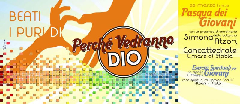 Sabato 28 marzo il Servizio di pastorale giovanile dellArcidiocesi di Sorrento-Castellammare di Stabia organizza la Pasqua dei Giovani 2015, in occasione della XXX Giornata mondiale della gioventù. Il filo conduttore è il messaggio di Papa Francesco per questa XXX Gmg: Beati i puri di cuore perché vedranno Dio.