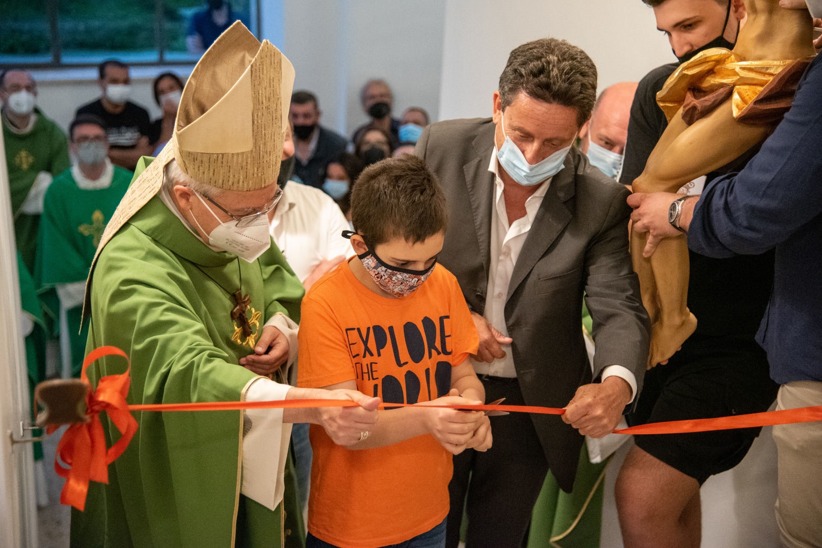 Al termine della celebrazione, la benedizione dei locali si conclude con l’unanime auspicio di vedere queste sale piene di ragazzi, che con gioia e fiducia crescano e divengano sale e luce della nostra terra.