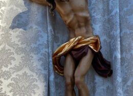 Sul lato destro del campo, è stato allestito l’altare su cui campeggia lo splendido Crocifisso appositamente commissionato e appena arrivato da Ortisei che al termine sarà collocato nel corridoio al primo piano.