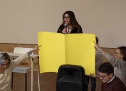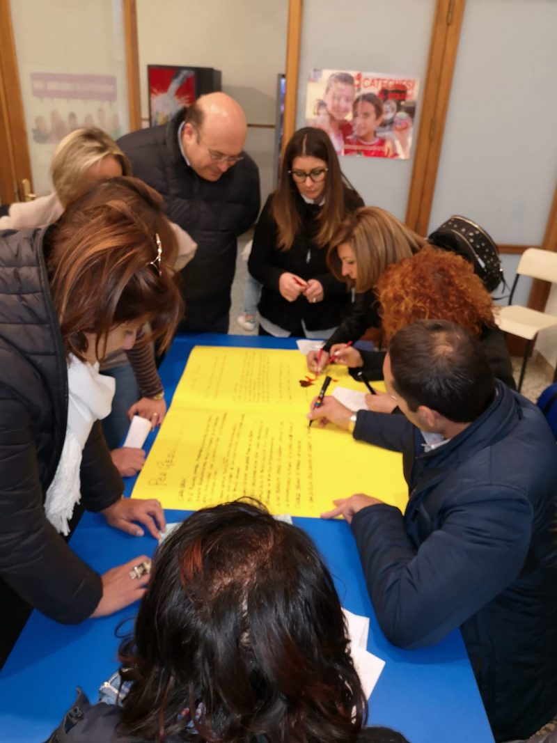 Ogni gruppo ha lavorato sul vangelo letto, dandone una propria interpretazione. Due gruppi hanno messo in scena un TG con genitori e bambini, mentre gli altri due gruppi hanno lavorato con emojon (i bambini associano ad ogni passo di vangelo un emojon) e due lettere composte dai genitori, una indirizzata al giovane ricco ed un altra a Gesù. A conclusione un piccolo commento del parroco sul vangelo e del nostro vice parroco sul brano della canzone di Ligabue “Una Vita da mediano” (genitori mediani dei figli, come nel calcio si recuperano i pallini persi dai difensori ma devono essere pronti a spianare loro la via ed il gioco per far sì che loro possano fare i goal più belli).