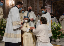 In seguito all’interrogazione del Vescovo, Antonietta si è prostrata ai piedi dell’altare durante le litanie, ha rinnovato la sua volontà di consacrarsi con la perpetua castità al Signore, attraverso i due gesti simbolici del rito: la consegna dell’anello nuziale da parte del Vescovo e del libro della liturgia delle ore. La celebrazione è proseguita con la professione di fede e la liturgia eucaristica.