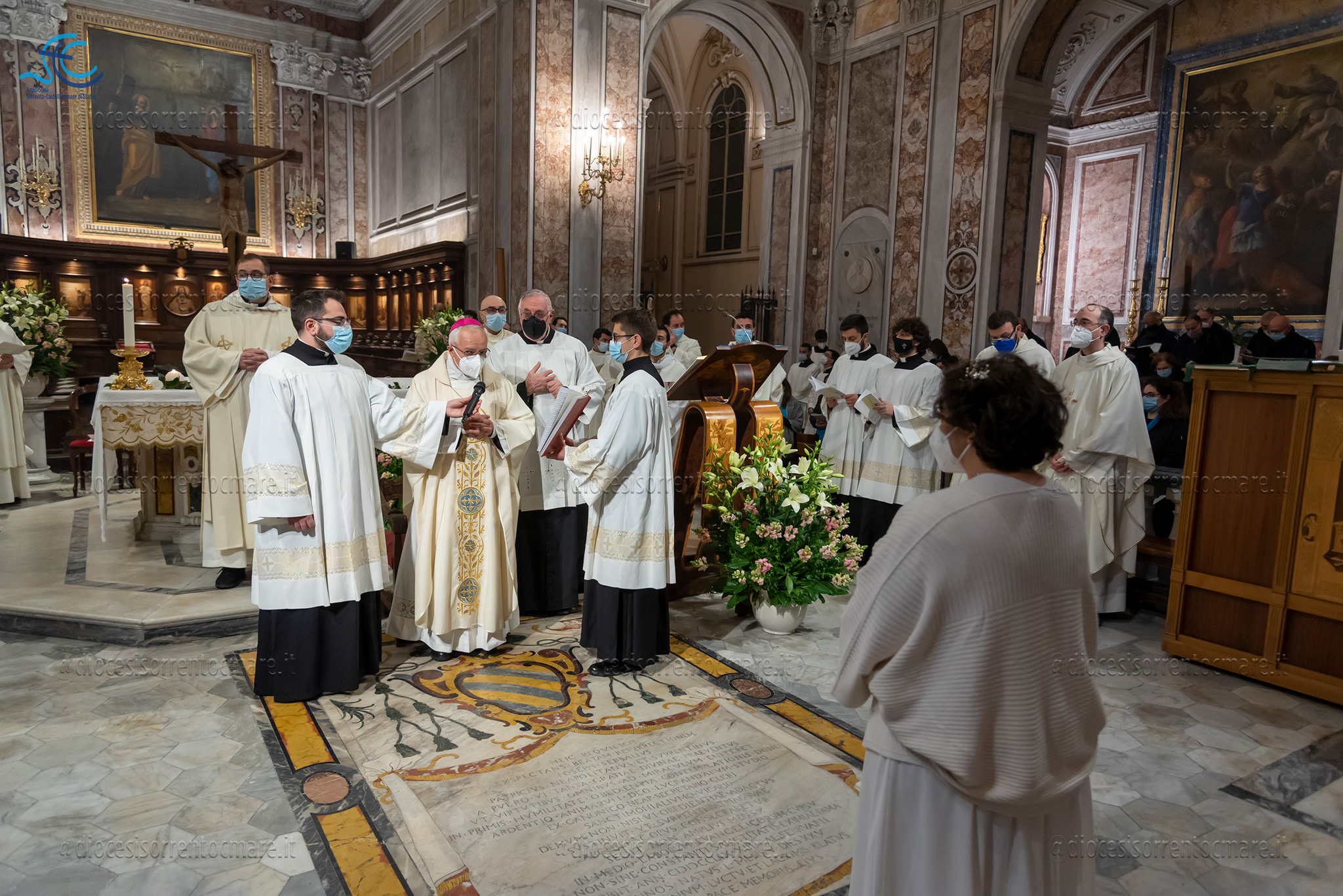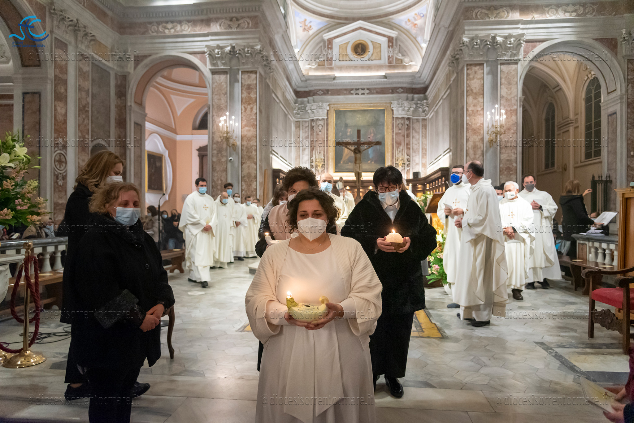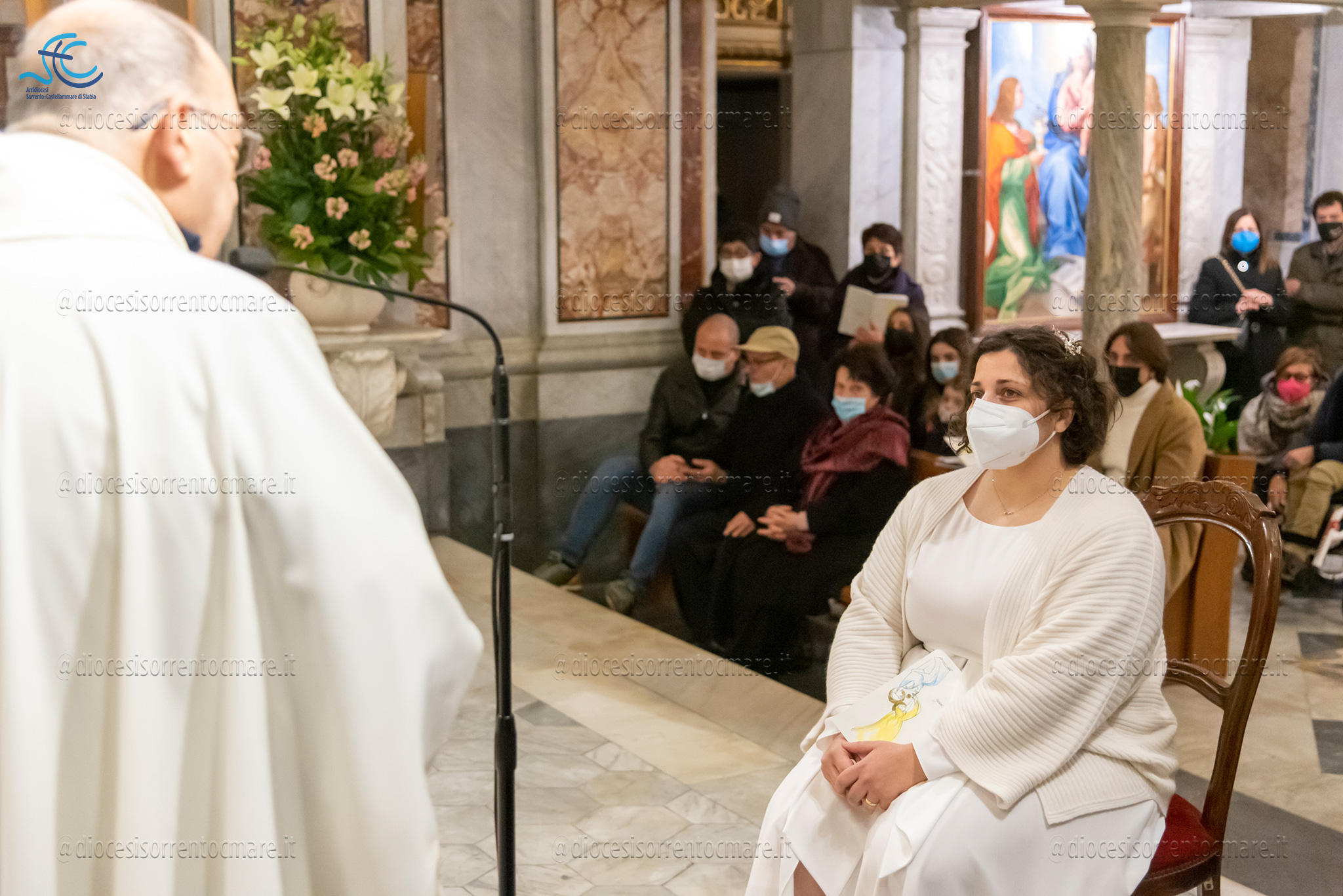 “Oggi è la festa della nostra Chiesa, l’Immacolata Concezione, e noi la celebriamo in modo speciale. Siamo testimoni di un dono di amore e predilezione. Siamo predestinati, siamo eredi e figli, ci viene in aiuto Maria in questo grande mistero, con il suo silenzio a fidarci di Dio. Le vergini consacrate ci permettono di entrare di più nel mistero della Chiesa, grazie alla loro dimensione sponsale. Eccola, una ragazza che ancora non ha pienezza dell’esperienza della vita, che sceglie con gioia di vivere questa incompletezza. Questo è un segno, per tutta la chiesa – le parole di Mons. Francesco Alfano, nel silenzio della Cattedrale di Sorrento.