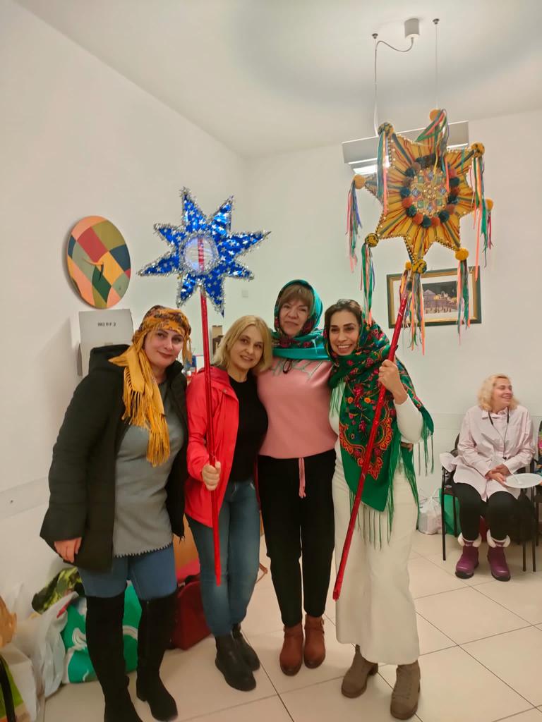 Al termine della priocessione, che si è conclusa dinanzi al presepe della Cattedrale, le mamme ucraine, hanno poi partecipato ad un incontro con me durante il quale mi hanno fatto dono de “La Madonna che scioglie i nodi“, un lavoro fatto con le loro mani e ricamatio con delle perline.