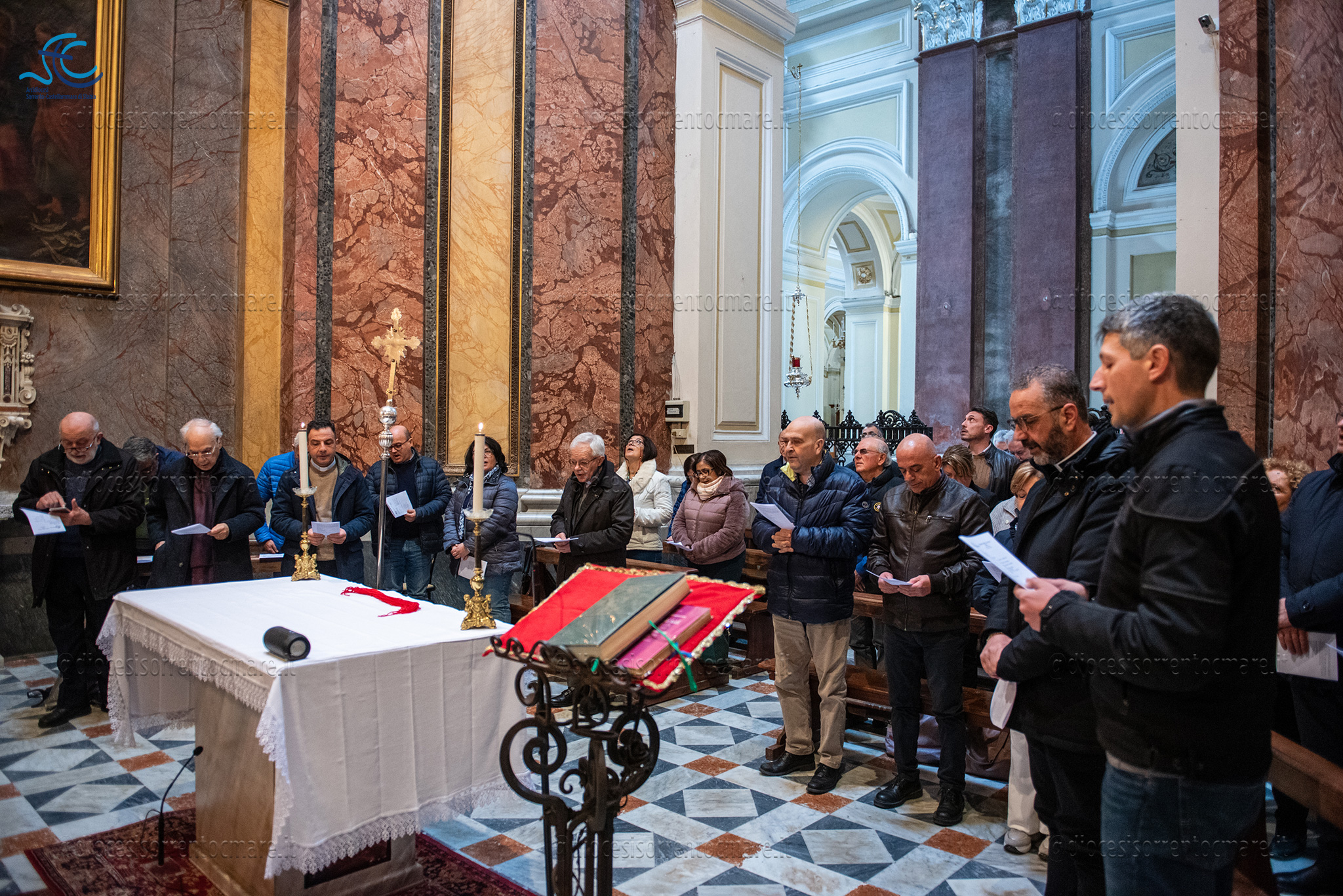 Lunedì Santo, 25 marzo, nella cappella del SS. Sacramento della Chiesa Concattedrale di Castellammare di Stabia, il nostro Arcivescovo Mons. Alfano ha incontrato tutti gli operatori degli uffici e servizi di curia, per un intenso momento di preghiera, preparato da don Emmanuel, direttore dell’Ufficio Liturgia e Ministeri.