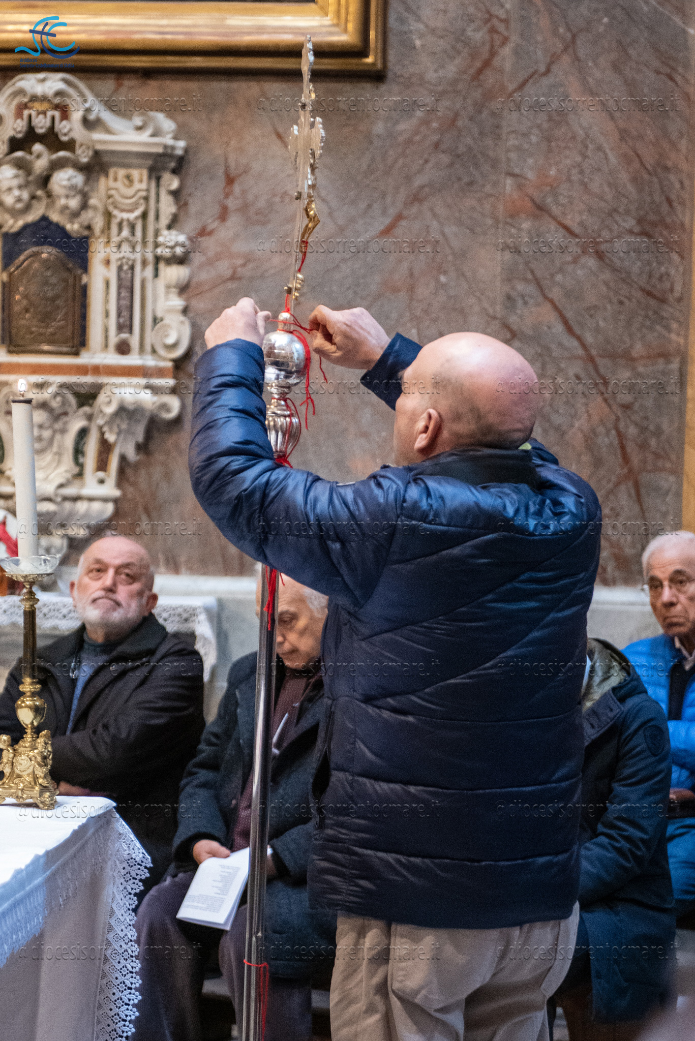 Don Emmanuel, prima di concludere la preghiera, ci ha invitati a prendere un filo rosso e a legarlo alla croce, come segno di intima ed indissolubile unione a colui che è morto e risorto per noi e che ogni giorno, attraverso la Parola e l’Eucarestia, ci ricorda il completo e gratuito dono di sé.