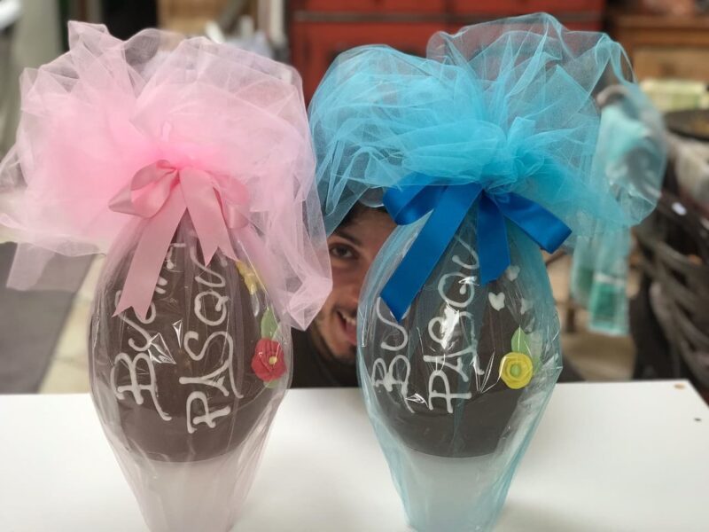 Le sue uova di Pasqua sono delle vere opere d’arte, oltre che favolose nel gusto. Il cioccolato che utilizza è quello Belga, ma l’ingrediente migliore resta sempre la passione. Per realizzare un uovo, impiega circa un’ora, dal temperaggio del cioccolato – la parte più complessa – all’incartamento. È un lavoro di precisione e di attesa. Luca, ne ha per tutti i gusti: fondente, al latte, bianco, pistacchio, caramello, caramello salato e bianco. Con l’aggiunta di nocciole, mandorle, pistacchi, frutta secca, fava di cacao. Per la sorpresa? Nessun problema, scegliete quella che desiderate e lui farà il resto. Vi state preoccupando del peso e della dimensione? Tranquilli, ce n’è per grandi e piccini.