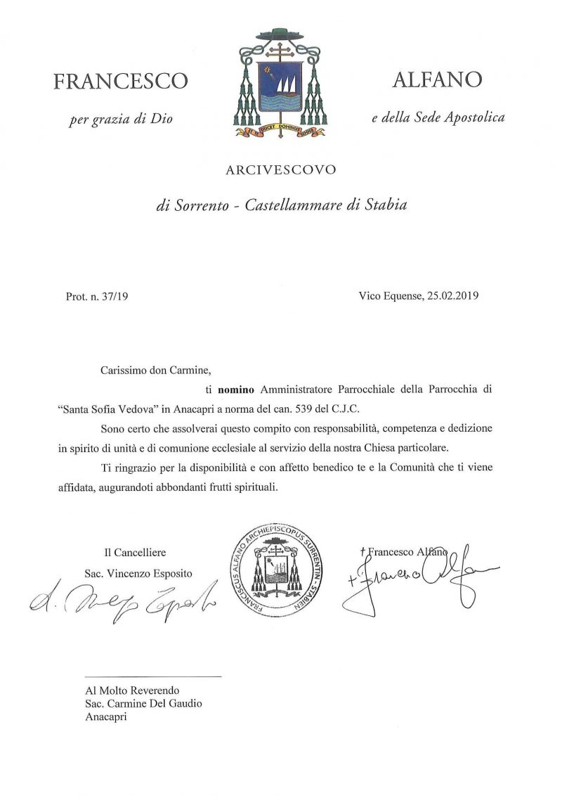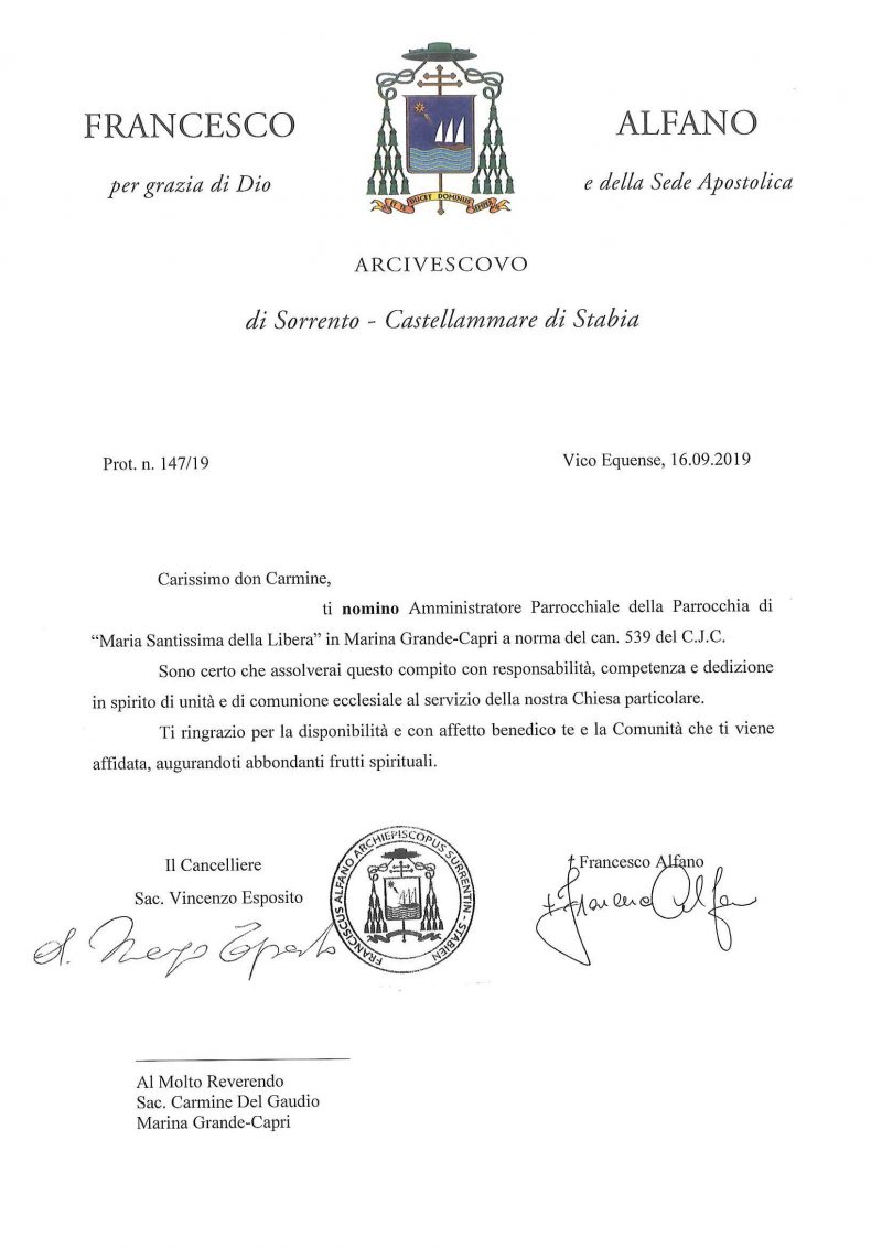 Amministratore Parrocchiale Maria Santissima della Libera in Capri