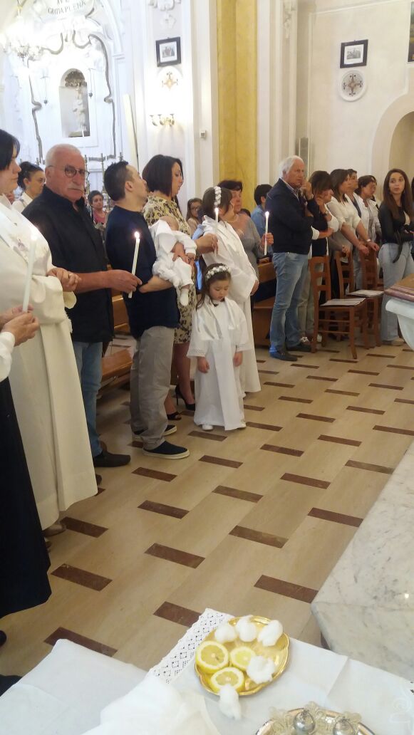 Si, mamma Anna con i tre figli – Maria – Benedetta e Matteo hanno ricevuto il Santo Battesimo  celebrato dal nostro Vescovo Sua Ecc. Mons. Francesco Alfano, con il parroco Don Salvatore Vitiello e il cerimoniere Don Ciro Esposito.